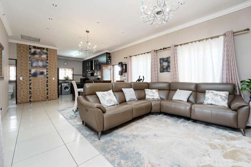 Discover the perfect blend of comfort and convenience in this delightful home, now available in the sought-after Broadacres/Kengies neighbourhood. Meticulously designed with exquisite finishes and attention to detail, this property is truly 'move-in ready' for the discerning buyer. Large porcelain tiles elegantly adorn the entire house, offering a polished shine and a clean, modern aesthetic that is both timeless and highly desirable.