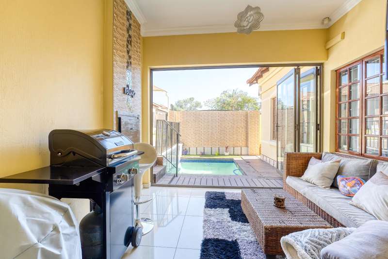 The garage, seamlessly integrated into the house, is tiled to match the rest of the home, making it versatile enough to function as a temporary playroom or project space. Just outside, a double-covered carport provides additional parking. The property is further enhanced with a full 10KVA inverter and battery system, supported by eight solar panels, ensuring energy efficiency and peace of mind. The pool also benefits from its own solar heating panel, contributing to the home?ÇÖs eco-friendly credentials.