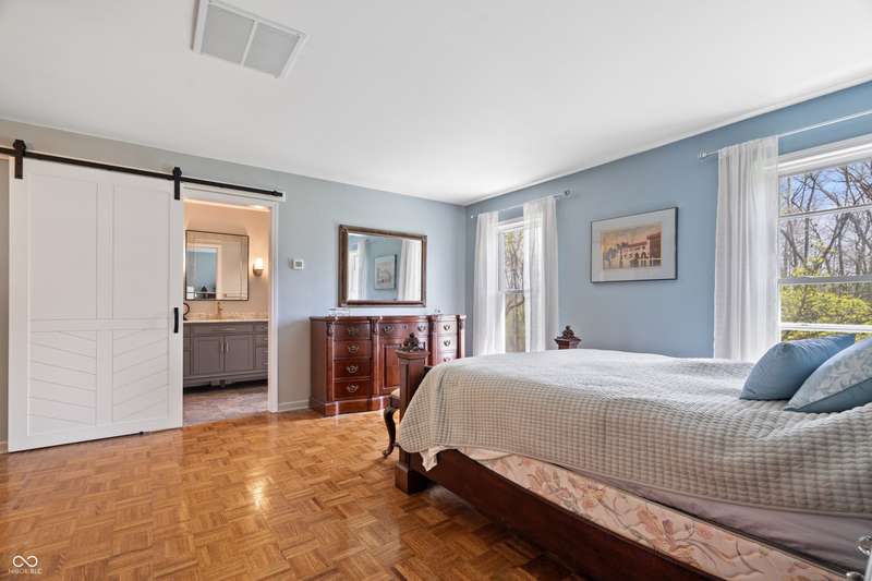 Welcome to this remarkable, wooded retreat! Set on nearly 3 acres in Whitestown, right on the edge of Zionsville, this one-of-a-kind property blends charm, privacy, and modern luxury. Inside you'll find over 2K sq ft of beautifully finished living space, including 3 spacious bedrooms and 3 full baths. The gourmet kitchen is a showstopper - featuring Amish-made custom cabinetry, huge picture window & sleek design that marries timeless craftsmanship with modern style. Hardwood floors flow through the main level, while the original parquet upstairs adds warmth and character. Both the primary and guest bedrooms offer elegant charm & ample storage. Step outside to a peaceful patio overlooking your very own wooded oasis, with scenic Jackson's Creek winding through. Surrounded by mature trees and the feeling of a private nature preserve, this is truly a rare find. They just don't build homes like this anymore - come see the space, serenity, and soul for yourself.