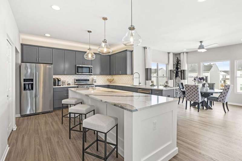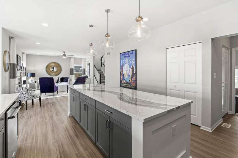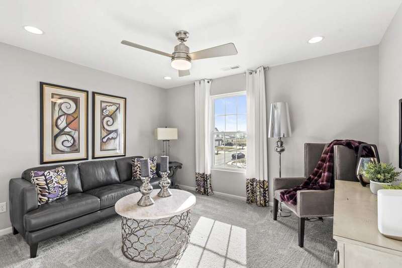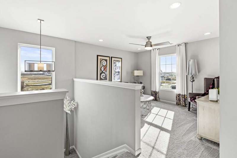 Proposed New Construction - The Cumberland in Falling Waters, Crown Point, IN An exceptional new construction opportunity located in the prestigious Falling Waters gated community of Crown Point, IN. This beautifully designed home offers modern style, open living spaces, and quality craftsmanship throughout. The main floor features 9-foot ceilings, a deluxe kitchen, cafe with basement, flex room, and a spacious great room--perfect for entertaining. The kitchen boasts a 7-foot Quartz island with extended countertop, cabinet storage, and a pantry for convenience. The partial lookout basement includes a 3-piece rough-in for a future bathroom, providing flexibility for future expansion. Upstairs, the primary bedroom offers a private ensuite bath and walk-in closets. Two additional bedrooms share a full bathroom, and a loft adds extra living space for work or relaxation. The second-floor laundry room adds everyday convenience. Professional landscaping is included. Photos are of a similar home and may include upgraded features. Don't miss this opportunity to build your dream home in Falling Waters, one of Crown Point's premier gated communities. Ask about special builder financing and current promotions today!