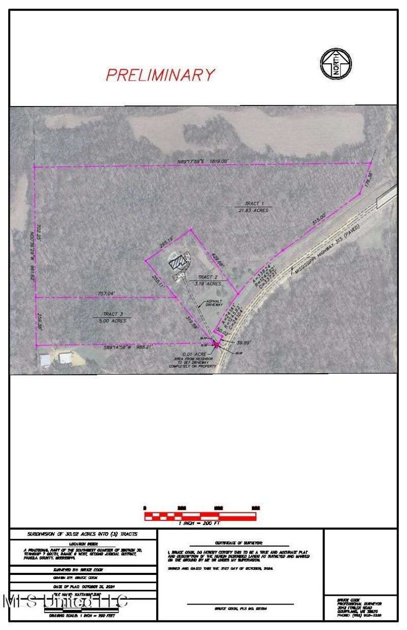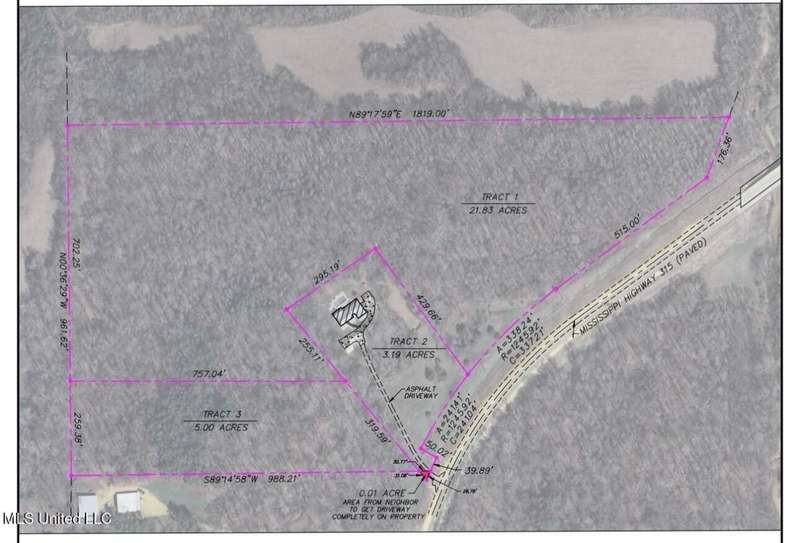 These Tracts have not had tax information from assessor since it was just subdivided from home. See Survey and Buyer to verify Correct Taxes and Schools. This is Tract 1 of 30 acres. Being sold as 21.83 acres. Land is located on Mississippi Hwy 315 going east before Union Rd