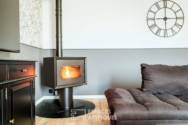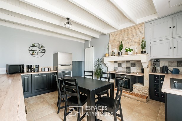 Nestled in a country hamlet, the large plot allows for easy enjoyment without being overlooked. Once through the gate, the building facing the courtyard immediately reveals its grandeur and generosity. Access via the front steps to the main door leads, on either side, to a living room with a unique ambiance featuring a pellet stove and a fitted and equipped reception kitchen promising many family meals or convivial table d'hotes. On the first floor, the bathroom is designed for families.