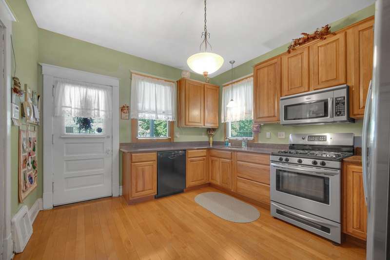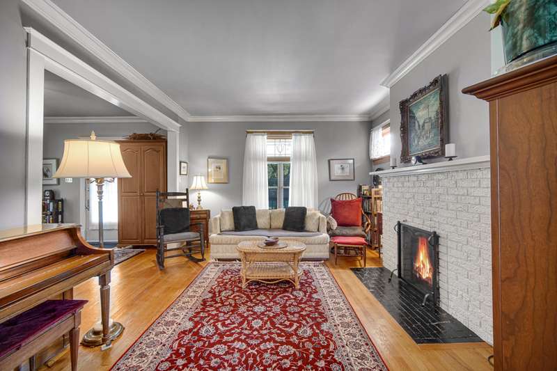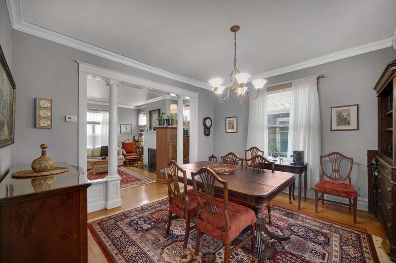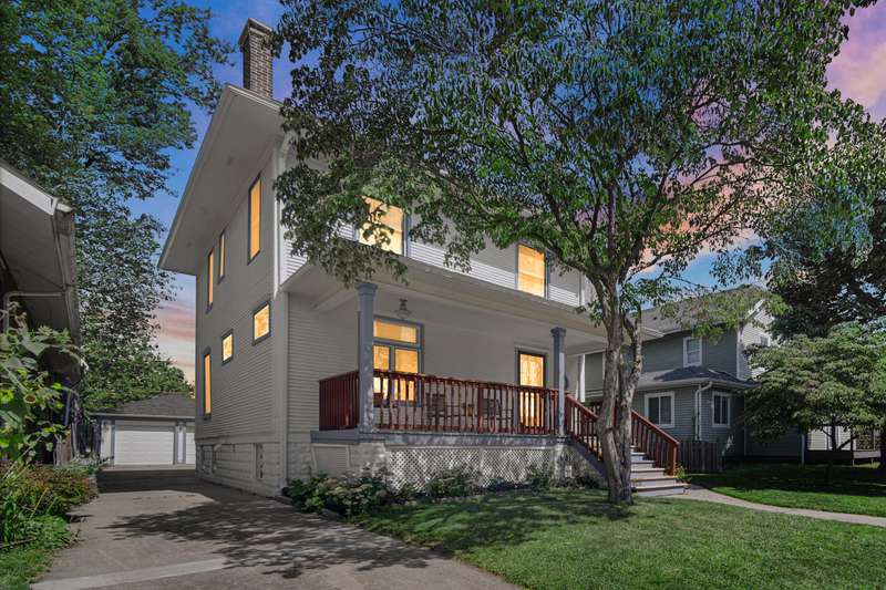 This well-maintained home has all of the updates and features that people are looking for in a home. The roof is 6 years, old, The eat in kitchen was completely remodeled in 2006 with extra cabinets for a pantry, new quality built solid cabinets, hard surface countertop with undermount sink, new hardwood flooring, and newer Stainless Steel appliances. The rest of the home has the original hardwood floors that have been refinished to its original luster. There are 2 fireplaces. One is in the living room is a wood burning fireplace and the other is located in the finished basement and it is a gas fireplace. The living room and dining room have the original the crown molding and substantial pillars separating the 2 rooms. SO much character in this home! That deep front covered porch just says "Stop by, sit down, and enjoy this fine afternoon weather." Above the living room fireplace are leaded glass windows reminiscent of that era. The staircase and front foyer have been preserved to look like new as well. The upstairs full bath was totally remodeled in 2013. There are 3 bedrooms upstairs and the primary bedroom is massive. The basement is finished and has a 3/4 bath, laundry room, and a storage room/furnace room. Security system is installed already. Central Air Conditioning. The fenced in backyard is the perfect size! It is great for social gatherings on the newer paver patio or working on that green thumb in your garden. This home is close to the Southshore train to Chicago or a short drive to Chicago via expressways. This home is absolutely gorgeous and you won't be disappointed!