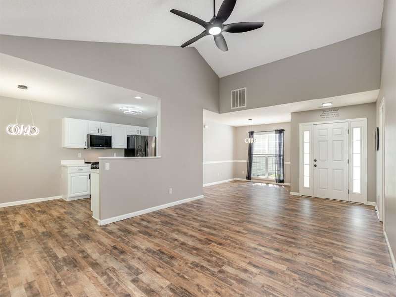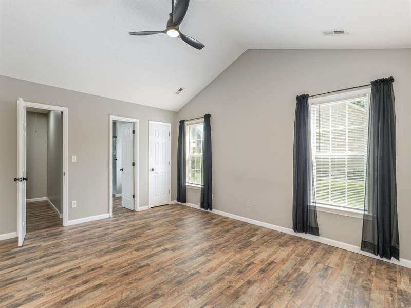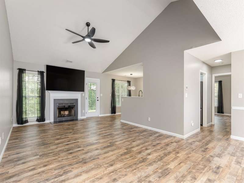Charming one level home with all the updates in popular Livingston Farms. Stylish Laminate Wood Plank floors throughout the home for easy care. Great kitchen with white cabinets, newer black stainless appliances, deep sink, and new faucet. Great room with vaulted ceiling, fireplace, and the big screen stays! Seller has never used the fireplace. A new hall bathroom with new step in shower, vanity and sink. The primary bedroom with ensuite bath has an amazing tub, perfect for soaking the day away. The bonus room over the garage can be anything you need and has a closet, need another bedroom, office, or workout space? Back patio is private and the whole yard is easily maintained. Livingston Farms community has walking trails and a playground plus the area has sidewalks throughout. Enjoy the convenient location to schools and shopping. Recent HVAC system, paint and a 2 year old roof.
