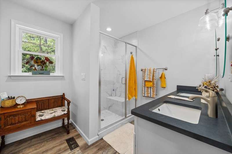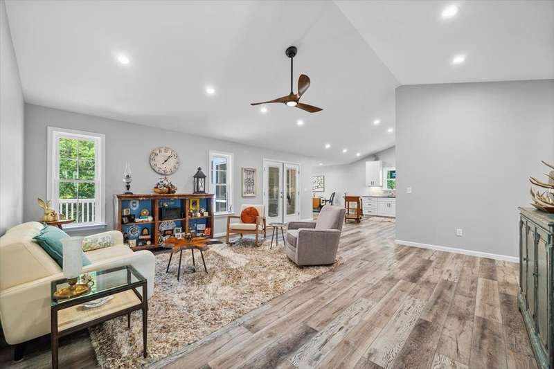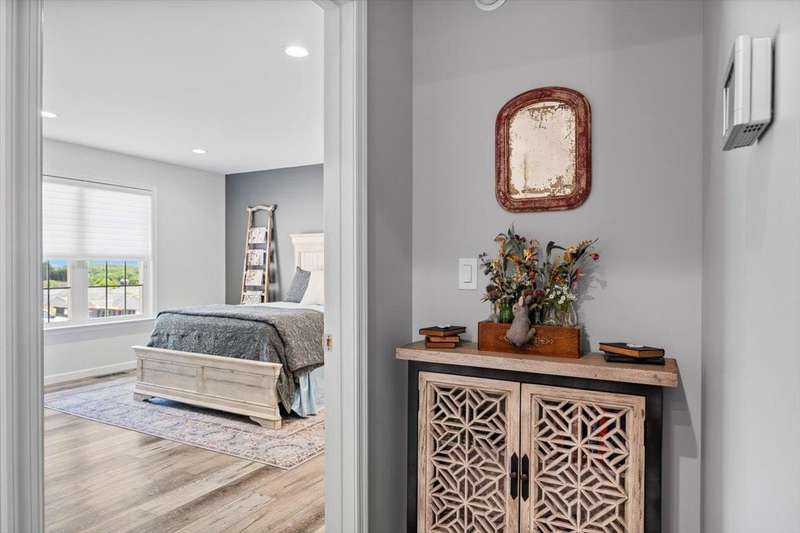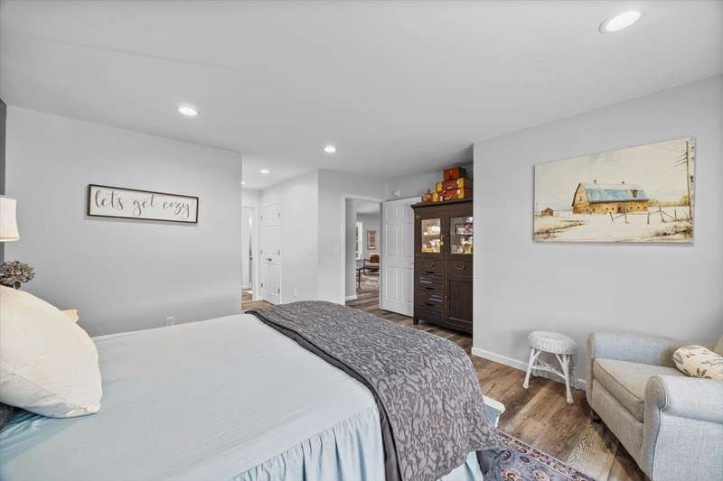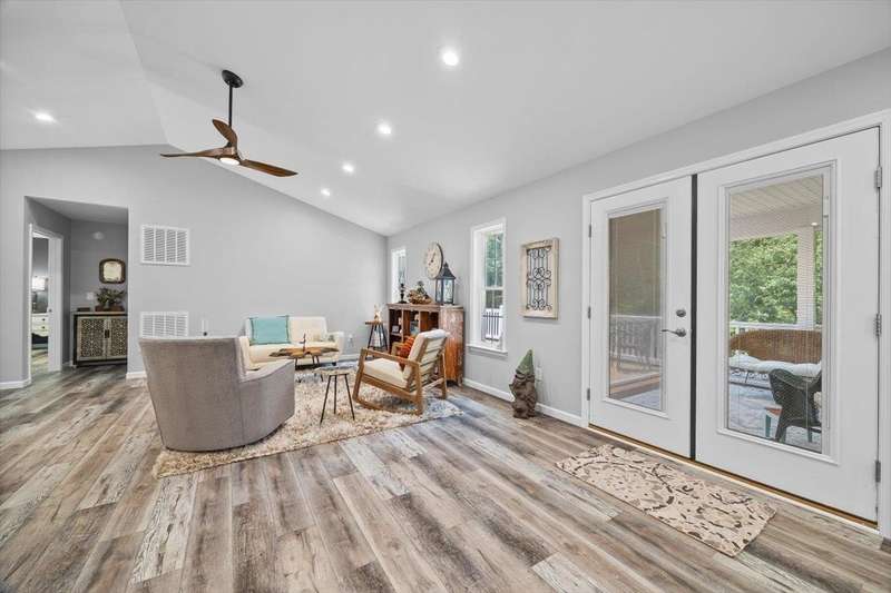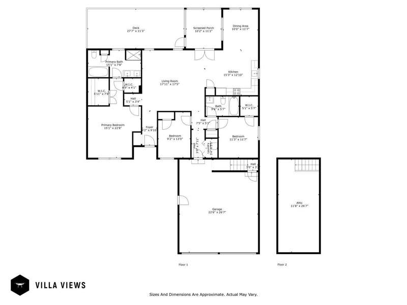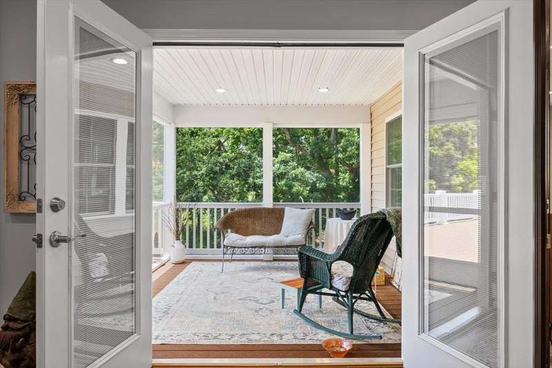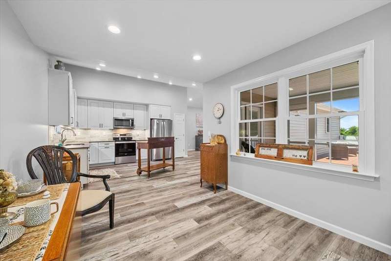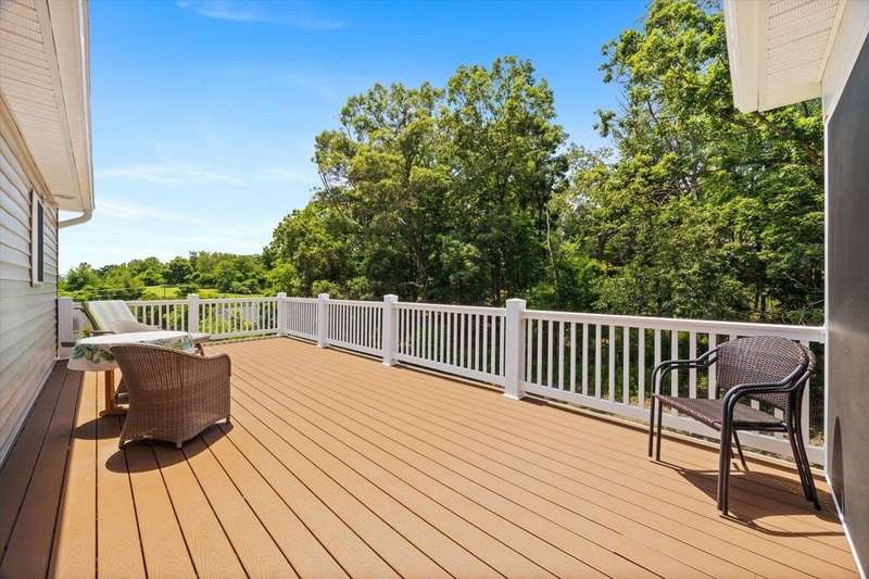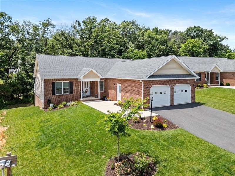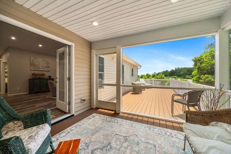 Accepting back up offers. This thoughtfully designed home offers a perfect blend of style, comfort, and convenience. Bedrooms positioned on opposite sides of the home for added privacy deal for visitors, extended family, or a quiet office retreat. Soaring vaulted ceilings and natural light create an inviting atmosphere, while Hunter Douglas shades add energy efficiency and warmth. The chef's kitchen features upscale Dekton countertops, a pantry, roll-out shelving, and ample cabinetry to keep life organized. Enjoy your morning coffee in the screened-in porch or host friends on the expansive Trex deck-both offering low-maintenance outdoor living in a peaceful setting. The spa-like primary suite includes a soaking tub, walk-in shower, double vanities, and generous closet space, all on the main level. A large unfinished attic offers room to grow. Here, lifestyle and leisure go hand-in-hand. The HOA takes care of yard maintenance and snow removal so you can spend more time doing what you love-and less time on chores. 1-year home warranty adds peace of mind. Lot in front of home will not be built on. The stunning views will remain.