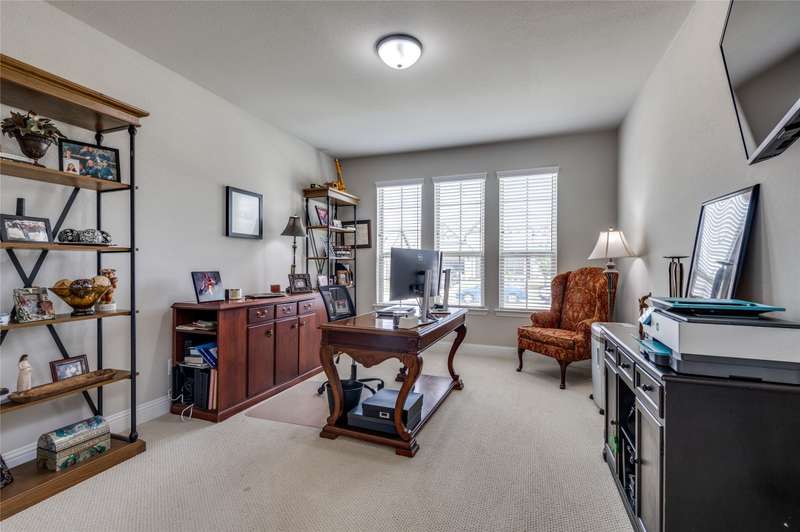 Exquisite Luxury Living in M3 Ranch, Mansfield, TX built by American Legend Homes. Welcome to a meticulously designed like new two story residence that epitomizes comfort and style in the heart of Mansfield's prestigious M3 Ranch community. Situated on an upgraded 60-foot lot, this 3651 square foot home offers four spacious bedrooms, 4 and a half bathrooms, a home office, media room, two dining areas and so much more. The open-concept layout seamlessly connects the stunning gourmet kitchen to the great room. A butler's pantry by the formal dining area is perfect for entertaining guests or enjoying family meals. High ceilings and abundant natural light enhance the home's airy ambiance, while the dedicated media room provides an ideal space for relaxation and entertainment. The game room is a fantastic space for the kids to play and study. The primary suite serves as a private retreat, boasting a soaker tub with beautiful tranquil finishes. A private secondary suite with bathroom located on the first floor, provides a fantastic option for Mother in Law or guests. The home boasts gorgeous hardwood floors throughout. There is a 3 car garage with ample space for cars, toys, work shop, you name it. Storage galore throughout the home. Exemplary Mansfield Schools. Call today for a private showing.