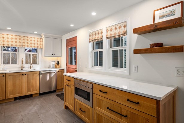 Tucked in the heart of Portsmouth’s South End, this beautifully reimagined home combines timeless character with thoughtful modern updates. The kitchen shines with custom cabinetry, quartz countertops, with Thermador & Bosch appliances, while the adjoining living area offers a warm, inviting spot to relax by the new electric insert in the wood burning fireplace. Upstairs, the spacious primary suite features a walk-in closet, custom built-ins, and an elegant en-suite bath. A second bedroom with its own newly updated full bath ensures comfort for guests or family. Originally renovated top-to-bottom in 2008 and enhanced again in 2020, the home continues to evolve with style and care. Classic details—exposed beams, gunstock corners, and wide wood floors—bring a sense of history to the light-filled spaces. Every detail has been carefully maintained and improved—from the refreshed landscaping with irrigation to the newly painted interior and updated heating system. Outside, a private stone patio and pocket garden create a peaceful retreat, and a garage with a brick driveway provides three coveted off-street parking spaces. Ideally located near Portsmouth’s best restaurants, parks, and waterfront attractions, this impeccable South End residence offers the very best of in-town living.