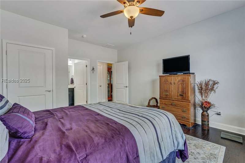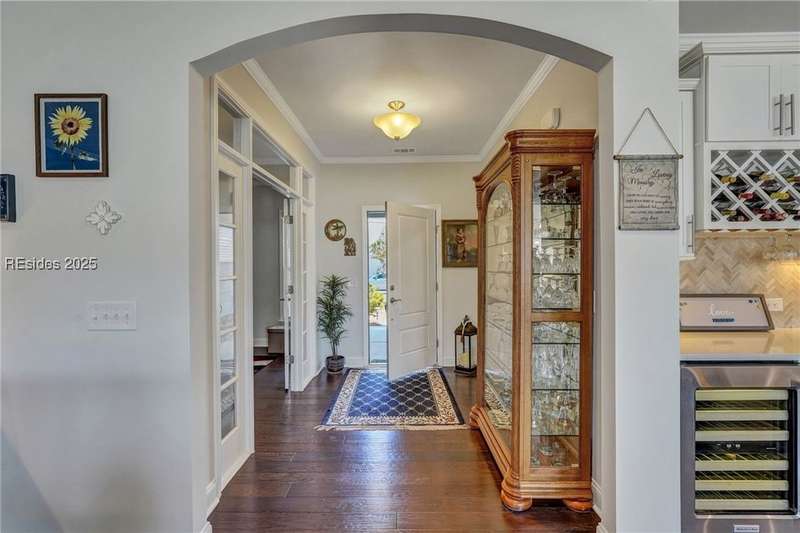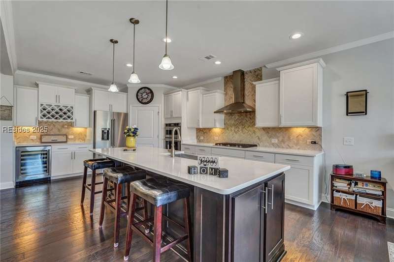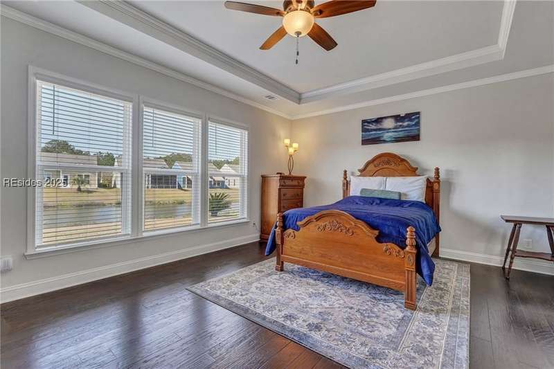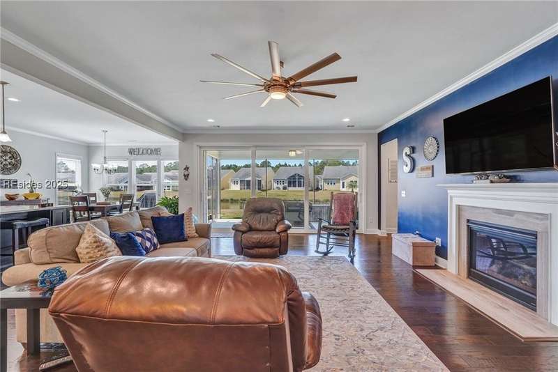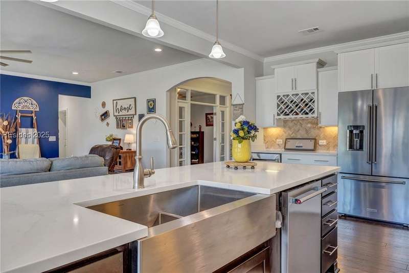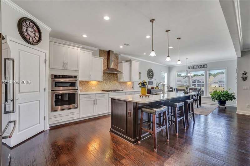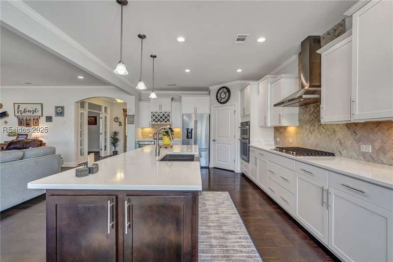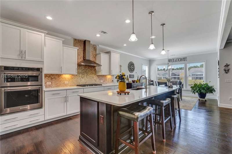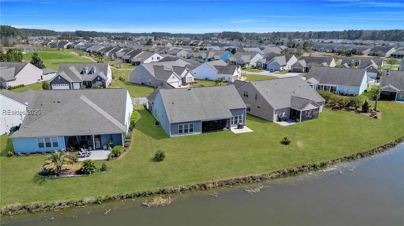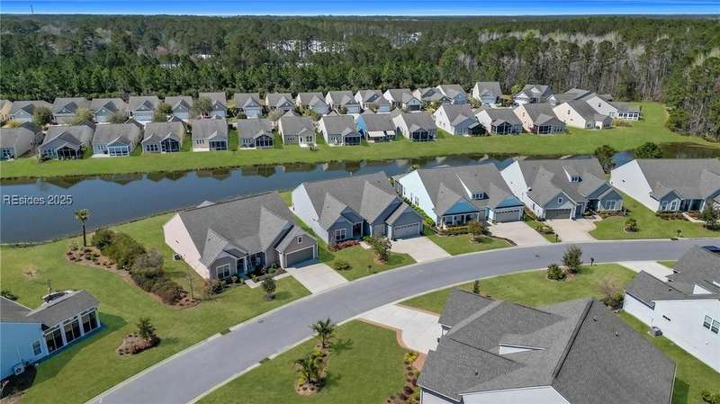 Fabulous Dunwoody Way offers stunning lagoon views & premium upgrades. Gourmet kitchen boasts quartz countertops, custom cabinetry, ext. island, SS KitchenAid appliances, gas cook top, wine fridge, & custom pantry. Entertainment friendly open-concept layout features a gas fireplace & telescoping doors to a large screened porch & patio. Wood floors & tile in baths & laundry. Custom closets and storage throughout. The primary suite w/ super shower & custom walk-in closet. 2 guest bdrs, 1 en-suite. Den w/ French doors. Laundry w/ cabinets & sink 2-car + golf bay gar. w/ walk-up storage. Centrally located for SC amenities.
