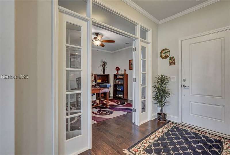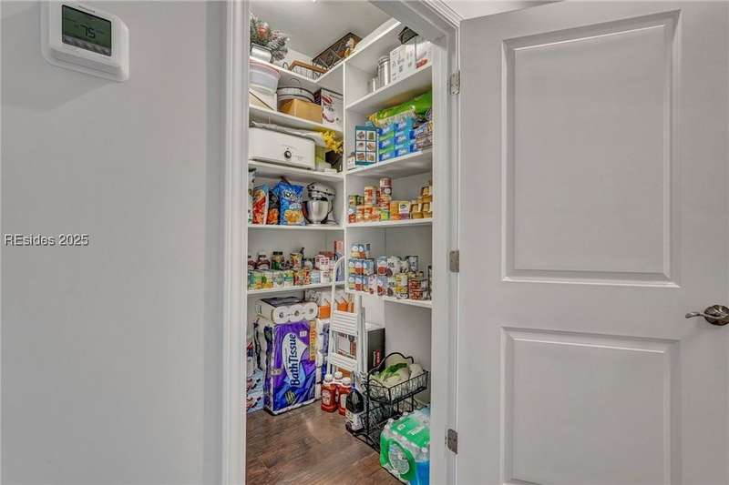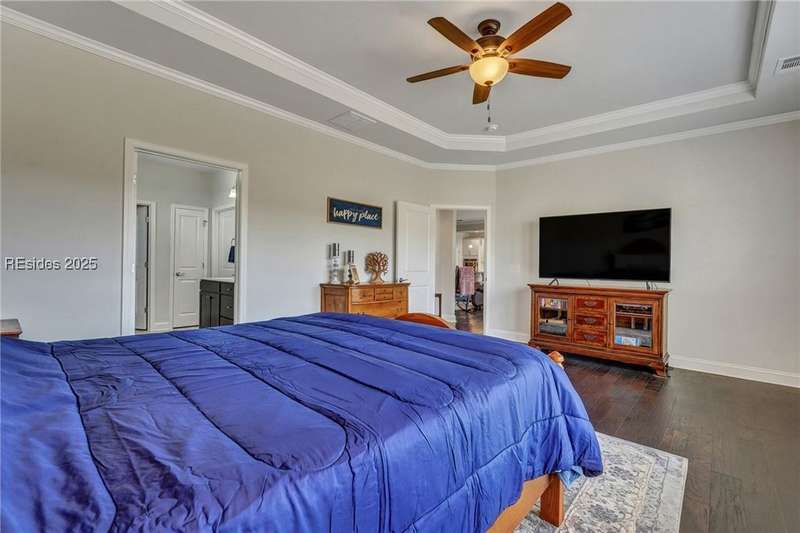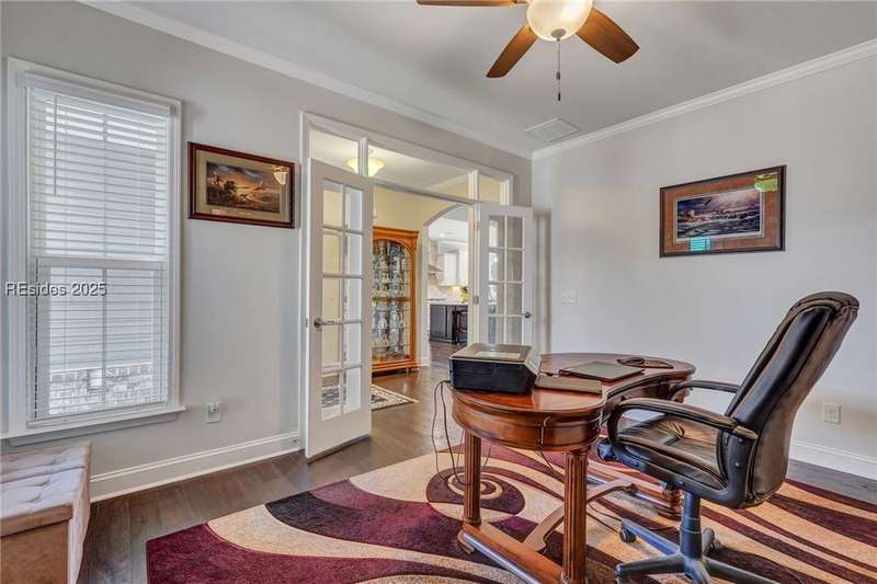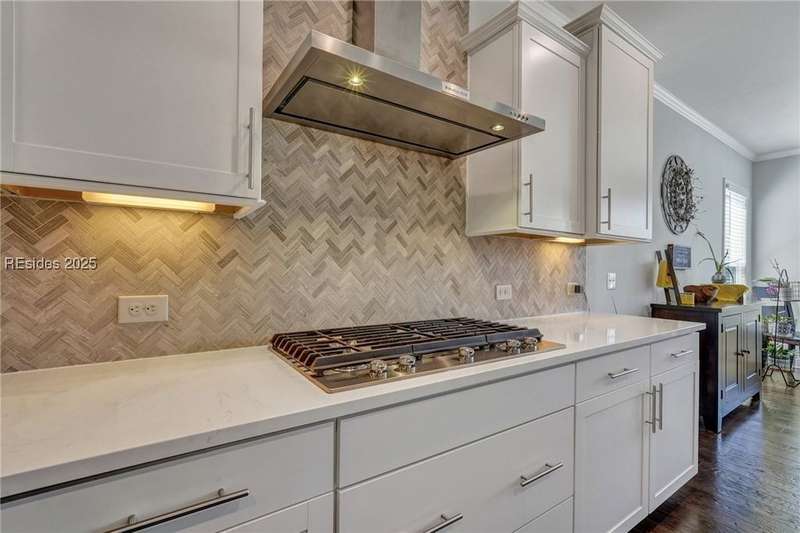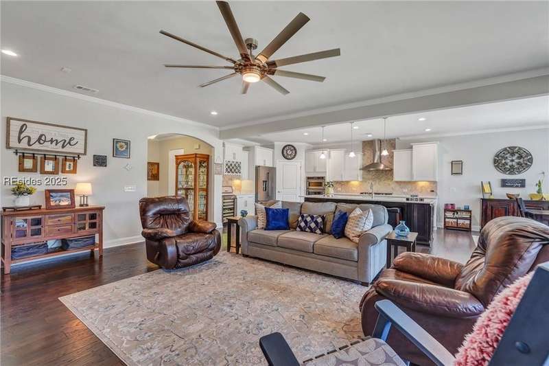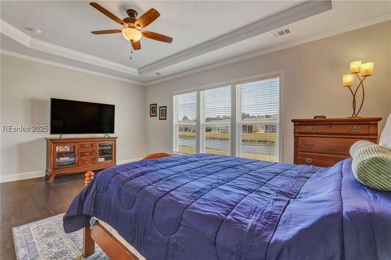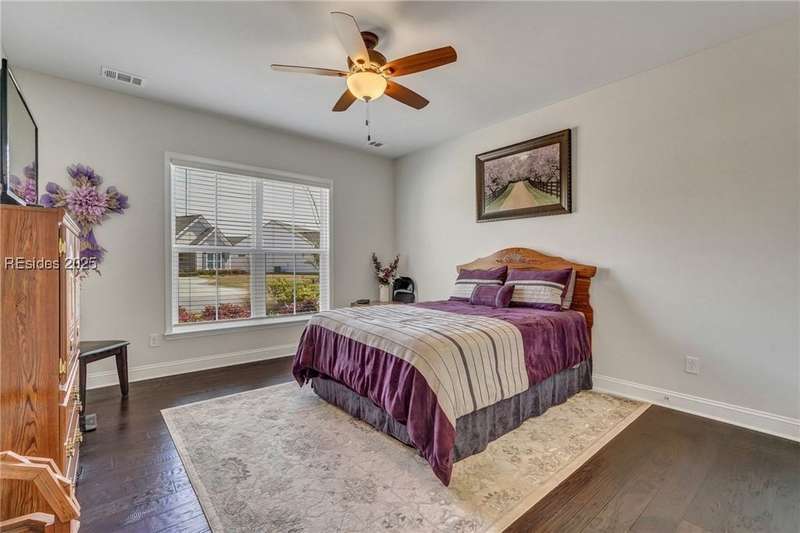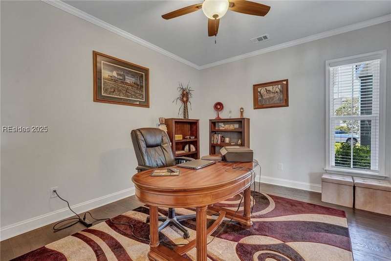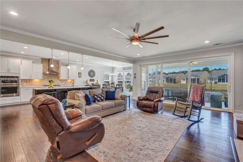 Fabulous Dunwoody Way offers stunning lagoon views & premium upgrades. Gourmet kitchen boasts quartz countertops, custom cabinetry, ext. island, SS KitchenAid appliances, gas cook top, wine fridge, & custom pantry. Entertainment friendly open-concept layout features a gas fireplace & telescoping doors to a large screened porch & patio. Wood floors & tile in baths & laundry. Custom closets and storage throughout. The primary suite w/ super shower & custom walk-in closet. 2 guest bdrs, 1 en-suite. Den w/ French doors. Laundry w/ cabinets & sink 2-car + golf bay gar. w/ walk-up storage. Centrally located for SC amenities.