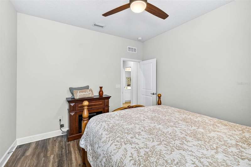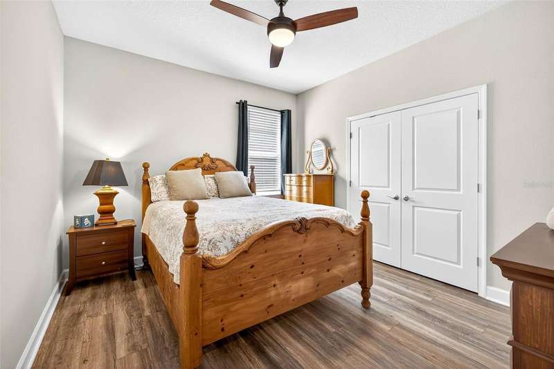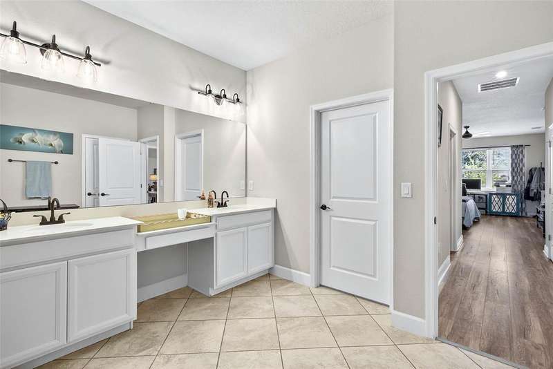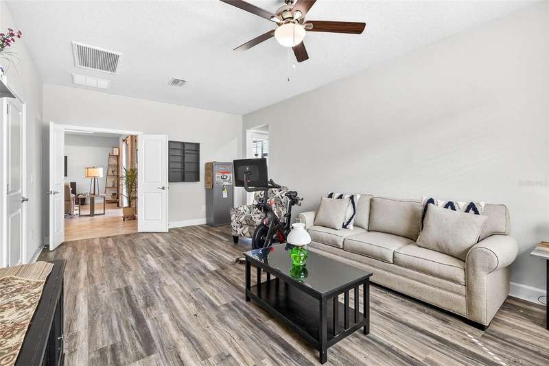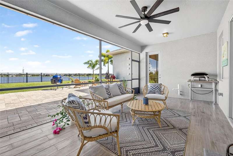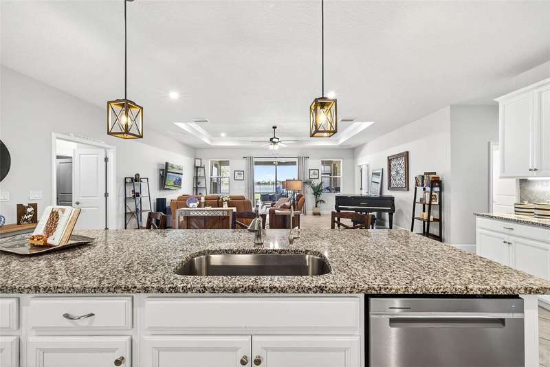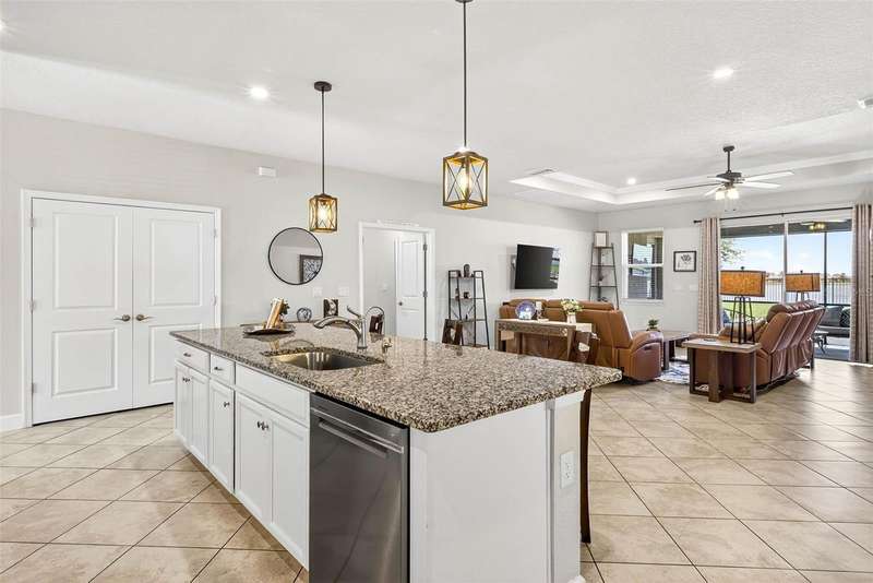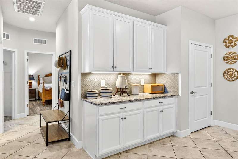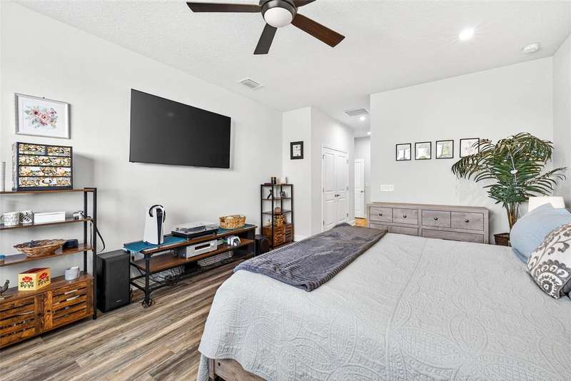 Welcome to this beautifully upgraded 5-bedroom, 3-bathroom home in the highly sought-after gated community of Lucaya Lake Club. With nearly $50,000 in upgrades, this residence blends thoughtful design, modern finishes, and versatile living spaces. From the curb, you’ll notice the professional landscaping, upgraded irrigation system, and wide paver driveway leading to the three-car garage. Step inside to find an open, light-filled layout with tile flooring in the main living areas and new hardwood flooring in all bedrooms and the bonus room. The heart of the home is the expansive living room with a tray ceiling, recessed lighting, and sliding glass doors that open to the lanai. The gourmet kitchen features granite countertops, stainless steel appliances including a new refrigerator, double wall ovens, herringbone backsplash, upgraded pendant lighting, and a large island with seating. A standout feature of this floorplan is its flexibility. In addition to the main living area, the home offers a second large living space that can be closed off to create a private in-law suite. This wing includes a wide-open bonus room, a spacious guest bedroom, and a full bathroom—ideal for multigenerational living, extended guests, or even a private retreat. The primary suite impresses with its size and spa-like ensuite bath featuring dual vanities, a makeup station, and a massive walk-in shower with decorative tile and a built-in bench. Additional bedrooms are generously sized, offering comfort and privacy for family and guests. At the front of the home, the fifth bedroom offers endless possibilities. With a custom Murphy bed built into the wall, this room is perfect for use as a home office, playroom, guest room, or anything else you desire. Its location and design make it one of the most versatile spaces in the home. Step outside to your private backyard oasis. The screened lanai, upgraded with tile flooring, opens to a custom paver patio with multiple seating areas, a fire pit, and a grilling station—perfect for entertaining or quiet evenings overlooking the lake. The backyard is enclosed with a black aluminum fence and professionally landscaped with mature palms and tropical plants, all with serene waterfront views of Lucaya Lake. For outdoor enthusiasts, this home is a dream—the lake is stocked with bass, tilapia, catfish, and bluegill, making it perfect for fishing right from your backyard. Additional upgrades include a whole-house water filtration and UV system, HVAC UV system, water softener with RO filter, and custom ceiling fans. Living in Lucaya Lake Club means enjoying resort-style amenities: a clubhouse, fitness center, zero-entry swimming pool, splash park, playgrounds, and access to the 78-acre lake for kayaking and paddleboarding. This is more than just a home—it’s a lifestyle of comfort, convenience, and community in one of Riverview’s most desirable neighborhoods.
