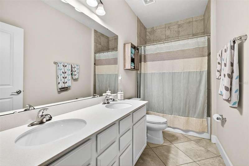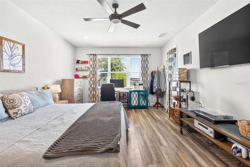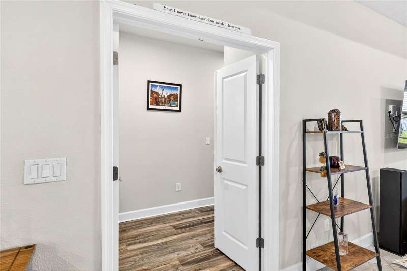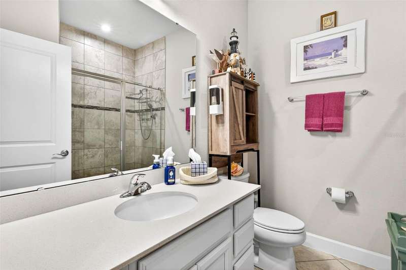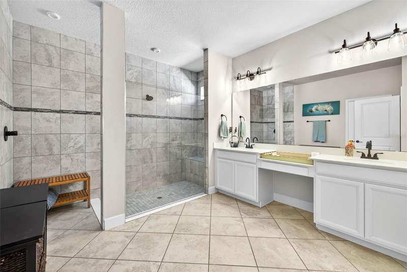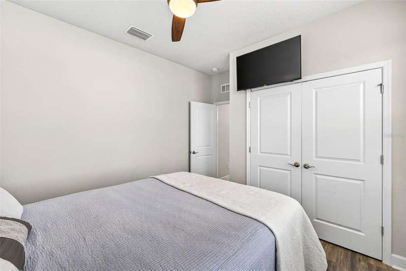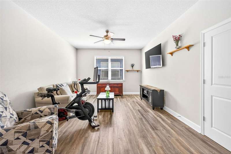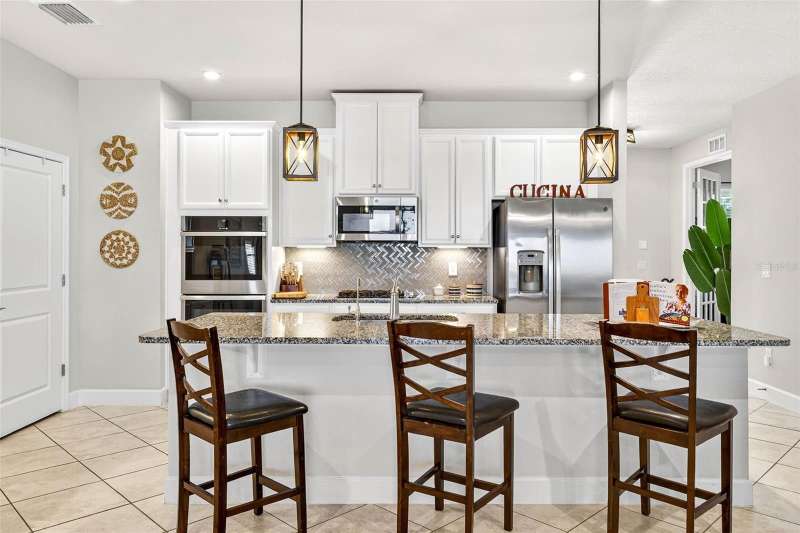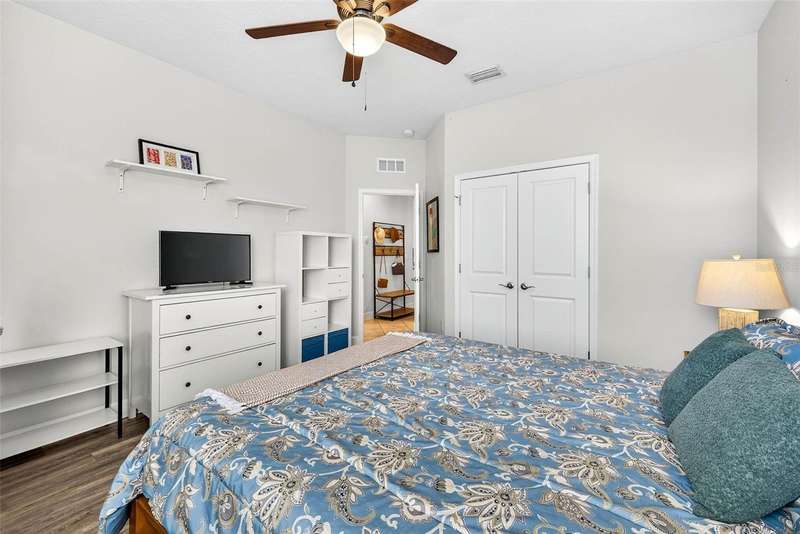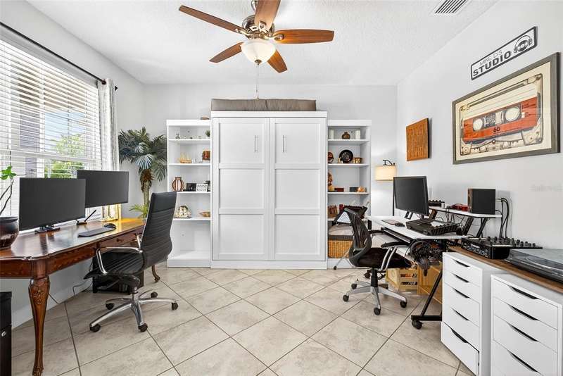 Welcome to this beautifully upgraded 5-bedroom, 3-bathroom home in the highly sought-after gated community of Lucaya Lake Club. With nearly $50,000 in upgrades, this residence blends thoughtful design, modern finishes, and versatile living spaces. From the curb, you’ll notice the professional landscaping, upgraded irrigation system, and wide paver driveway leading to the three-car garage. Step inside to find an open, light-filled layout with tile flooring in the main living areas and new hardwood flooring in all bedrooms and the bonus room. The heart of the home is the expansive living room with a tray ceiling, recessed lighting, and sliding glass doors that open to the lanai. The gourmet kitchen features granite countertops, stainless steel appliances including a new refrigerator, double wall ovens, herringbone backsplash, upgraded pendant lighting, and a large island with seating. A standout feature of this floorplan is its flexibility. In addition to the main living area, the home offers a second large living space that can be closed off to create a private in-law suite. This wing includes a wide-open bonus room, a spacious guest bedroom, and a full bathroom—ideal for multigenerational living, extended guests, or even a private retreat. The primary suite impresses with its size and spa-like ensuite bath featuring dual vanities, a makeup station, and a massive walk-in shower with decorative tile and a built-in bench. Additional bedrooms are generously sized, offering comfort and privacy for family and guests. At the front of the home, the fifth bedroom offers endless possibilities. With a custom Murphy bed built into the wall, this room is perfect for use as a home office, playroom, guest room, or anything else you desire. Its location and design make it one of the most versatile spaces in the home. Step outside to your private backyard oasis. The screened lanai, upgraded with tile flooring, opens to a custom paver patio with multiple seating areas, a fire pit, and a grilling station—perfect for entertaining or quiet evenings overlooking the lake. The backyard is enclosed with a black aluminum fence and professionally landscaped with mature palms and tropical plants, all with serene waterfront views of Lucaya Lake. For outdoor enthusiasts, this home is a dream—the lake is stocked with bass, tilapia, catfish, and bluegill, making it perfect for fishing right from your backyard. Additional upgrades include a whole-house water filtration and UV system, HVAC UV system, water softener with RO filter, and custom ceiling fans. Living in Lucaya Lake Club means enjoying resort-style amenities: a clubhouse, fitness center, zero-entry swimming pool, splash park, playgrounds, and access to the 78-acre lake for kayaking and paddleboarding. This is more than just a home—it’s a lifestyle of comfort, convenience, and community in one of Riverview’s most desirable neighborhoods.