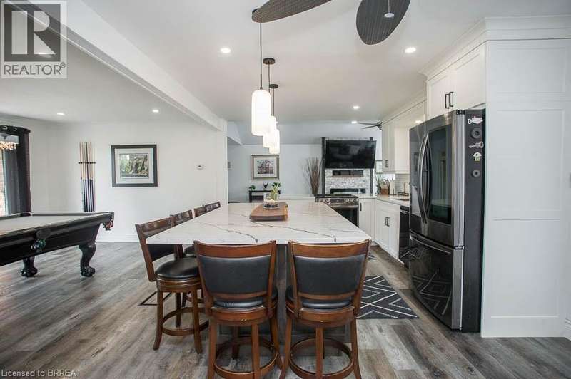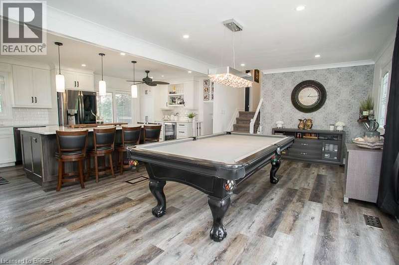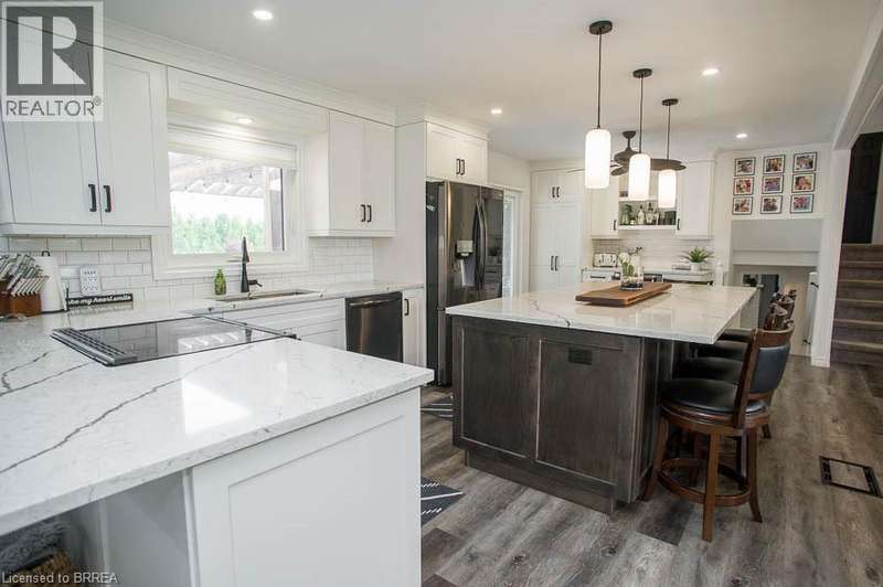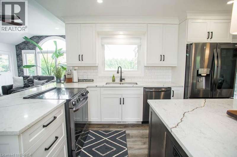 Welcome to this beautifully updated 3+2 bedroom, 2 full bathroom side split, set on a private 0.9-acre lot. The backyard is an entertainer’s dream, featuring a 20' x 40' saltwater pool (10 ft deep) with a new pump (2025), updated liner (2021), concrete surround, deck, and storage shed. Inside, you’ll find a stunning renovated kitchen (2021) complete with quartz countertops, white shaker cabinets, pendant and pot lighting, a pantry, a large island with storage, and stainless-steel appliances, including a wine fridge. The open-concept layout flows into the dining area (currently used as a games space) and bright living room, featuring large windows, an electric fireplace, and sliding doors to the backyard (2023). Upstairs offers a spacious primary bedroom, two additional bedrooms, and a 3-piece bathroom with a stand-up shower. The lower level provides two more bedrooms, a 4-piece bathroom with tub/shower combo, and plenty of storage, including a laundry area. Combining modern updates with incredible space and privacy, this home is the perfect retreat. Don’t miss your chance to own this amazing property! (id:7434)