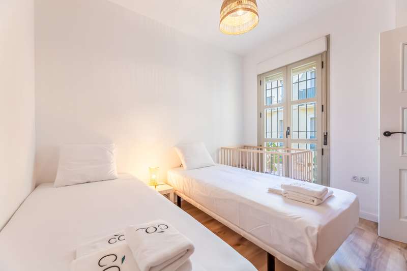 Welcome to this exceptional 4-bedroom apartment located in the heart of Málaga’s Centro Histórico. Despite being right in the center, the property enjoys the peace and quiet of a calm side street, offering the perfect blend of city life and tranquility. Situated on the ground floor, this exterior apartment boasts two private patios, allowing for natural light to fill every room. The design and decor are warm and inviting, this apartment truly feels like home. Property Highlights: Four well-sized bedrooms, all bright and comfortable Spacious living room with dining area, sofa lounge, and access to a sunny patio, ideal for relaxing or entertaining Second patio connected to one of the bedrooms, perfect for added privacy or outdoor space Two full bathrooms with modern finishes Fully fitted kitchen with all appliances and essentials Beautifully decorated and thoughtfully laid out Investment Potential: Valid tourist license already in place Currently operating as a successful short-term