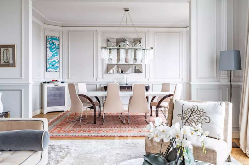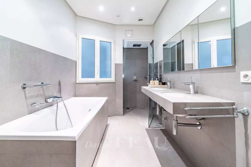 Located in a sought-after area with a prestigious address, close to shops, transport, schools, and the Ranelagh Garden, in a grand 1930s building currently undergoing renovation of its common areas, this immaculate family and reception apartment offers 211.54 sq m of living space (Carrez Law) on the 6th floor with elevator access. It comprises an entrance gallery, a living/dining room with a balcony and fireplace, offering unobstructed views and complete privacy, a fully equipped eat-in kitchen, a family room, an office, a master suite with bathroom, shower, and toilet, two large bedrooms, two shower rooms with toilets, a large dressing room (which could be used as a fourth bedroom), ample storage, and a guest toilet. A cellar and a storage room complete this property. Well laid out, absolutely quiet, beautiful ceiling height (3m), Possibility of acquiring in addition to the price two boxes located on level -1 and a service room of 8.04m² located on the 6th floor on the same service landing.