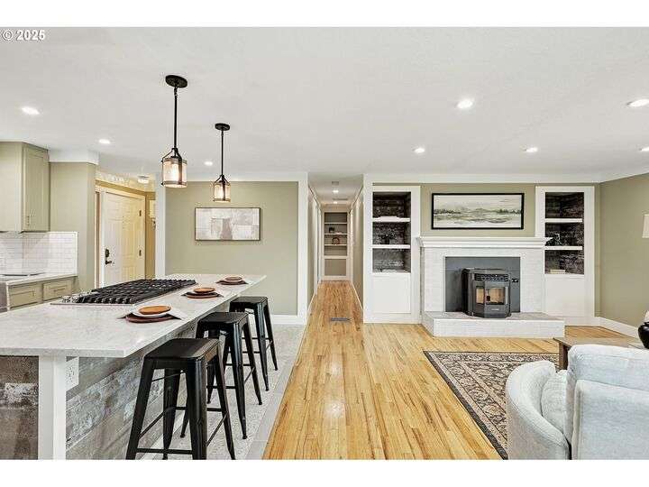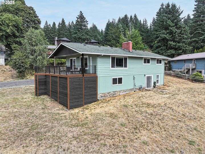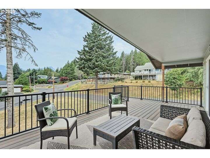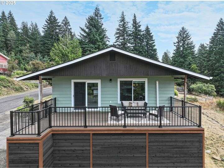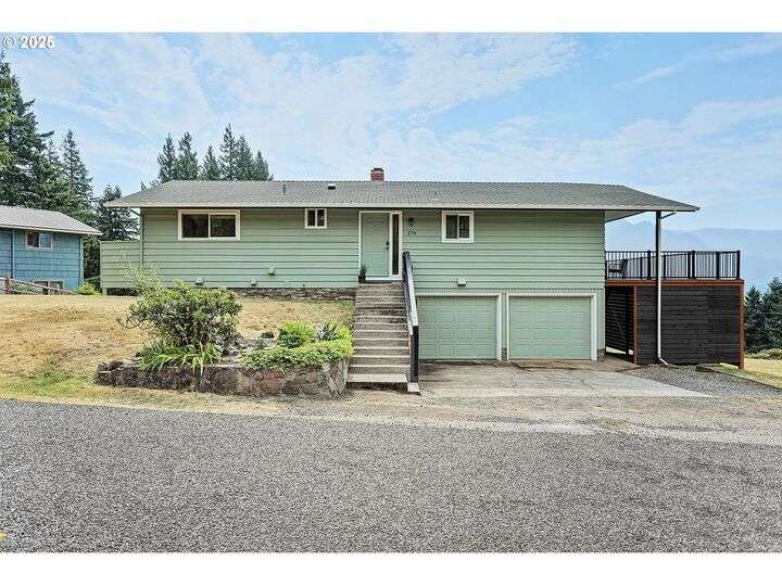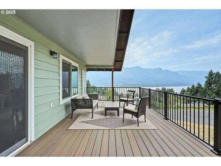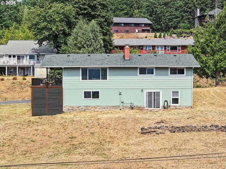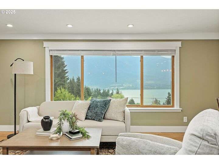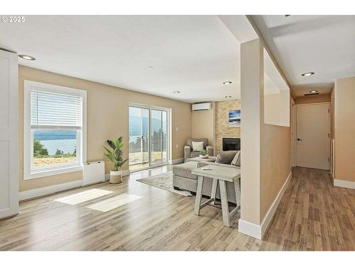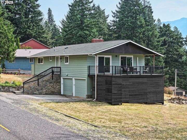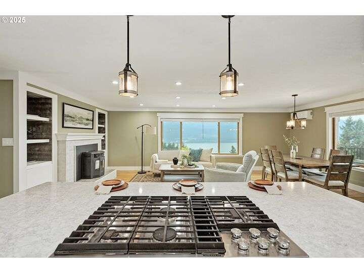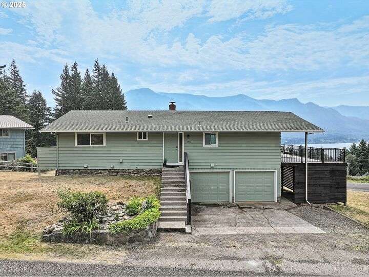 Welcome to this beautifully remodeled 4-bedroom, 2-bath home in the heart of Stevenson, Washington. Set above the Columbia River, it offers sweeping water views—including the iconic Bridge of the Gods—from nearly every window and from a spacious entertaining deck.Inside, upgraded finishes blend comfort and style: stainless steel appliances, quartz countertops, and heated tile floors grace the kitchen and bathrooms. The main level features three bedrooms, a full bath. Two fireplaces—one pellet, one wood—for cozy gatherings upstairs and downstairs. The lower level is a versatile retreat: use it as a primary suite, guest quarters, or mother-in-law apartment. It includes a custom built-ins, lovely stone front fireplace, a large tiled walk-in shower, and its own washer and dryer and a separate sliding door that leads out to your own patio area. Enjoy your morning coffee taking in the views of the river. Just minutes from downtown Stevenson’s shops, restaurants, and vibrant waterfront activities, this home combines modern luxury with the natural beauty of the Columbia River Gorge. Move-in ready and designed for year-round enjoyment.