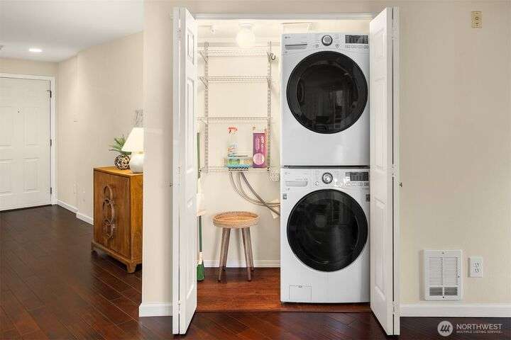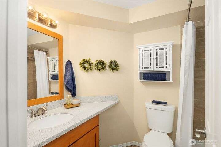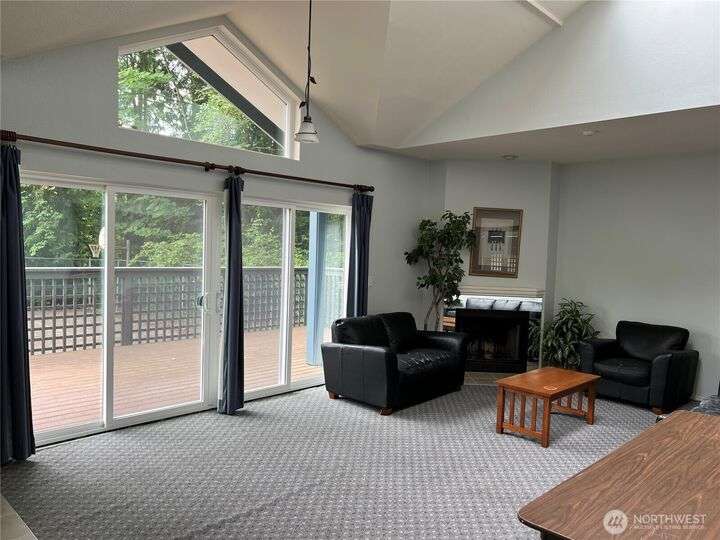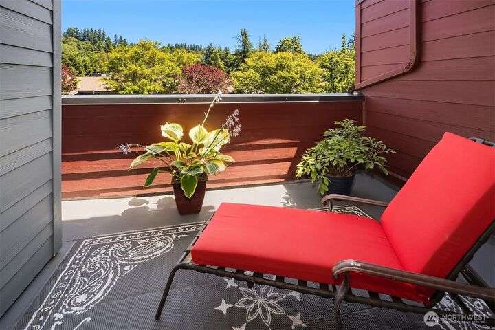 Hidden on a quiet hillside w/ private greenbelt, this beautifully updated 1 bedroom unit is the perfect escape. The open concept kitchen boasts granite countertops, a breakfast bar, ample cabinetry, & flows into a spacious, light-filled liv room w/ cozy wood-burning fireplace. An expansive private balcony overlooks the verdant tree-scape. The bright & airy bedroom features new carpet & 2 generous closets. Abundant storage options. Highlights include: brand-new water heater, in-unit washer/dryer, pet-friendly policies, 2 parking spots (garage & extra parking space). New siding, windows, sliding glass door, & exterior paint. Seller will pay remainder of assessment at closing. Easy commute.No rental cap makes this an ideal home or investment.