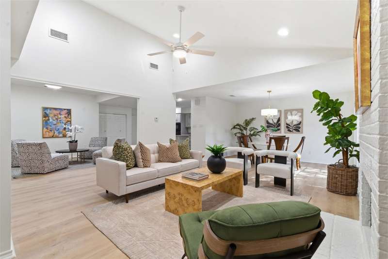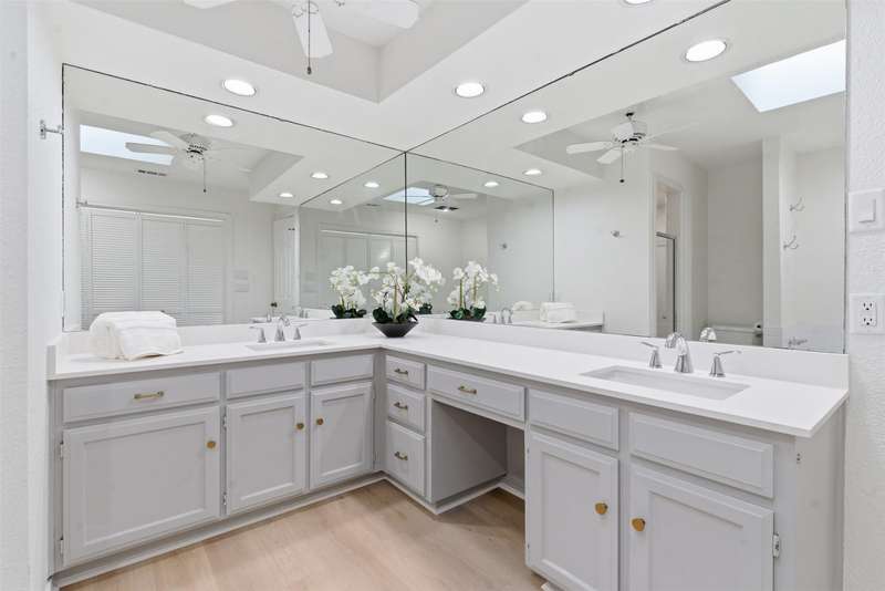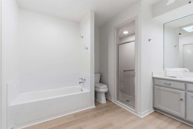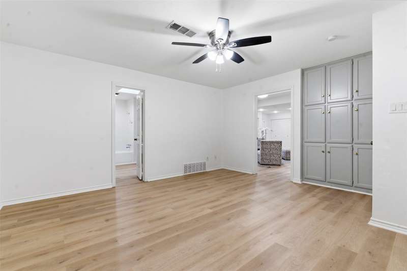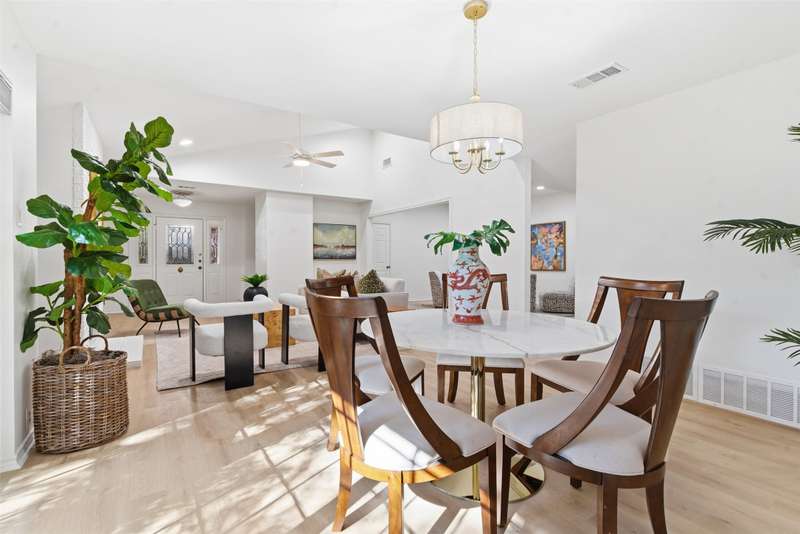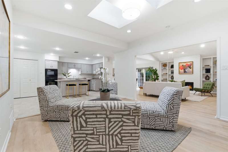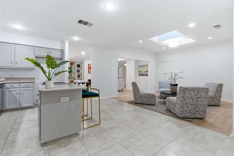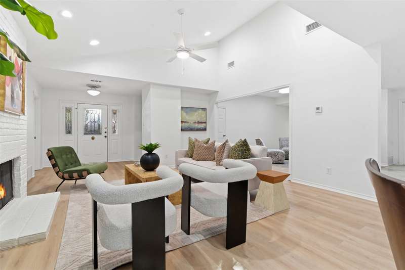 Located in the quiet, tree-lined Meadows West neighborhood, this beautifully updated single-story end unit townhome offers spacious, low-maintenance living just steps from the Trinity Trails and minutes from Watersides shops and restaurants. The open-concept great room includes the living, dining, and kitchen areas along with a flexible space ideal for an office, reading room, or more. A cozy fireplace flanked by built-ins creates a warm focal point perfect for gatherings and entertaining.Enjoy three inviting outdoor spaces, including an iron-fenced front courtyard and a private patio with turf and pavers accessible from both the dining area and secondary bedroom. Interior updates include new wood-look flooring, fresh paint, modern lighting, and stylish cabinet hardware throughout. The primary ensuite features new bathroom countertops, a soaking tub, and generous walk-in closet space.A third full bath adds convenience for guests, while multiple storage areas and a one-car garage with additional storage (or potential conversion back to a two-car) make this home as functional as it is beautiful. Offering comfort, versatility, and charm in one of Fort Worths most desirable communities, this Meadows West townhome is move-in ready and designed for effortless living.