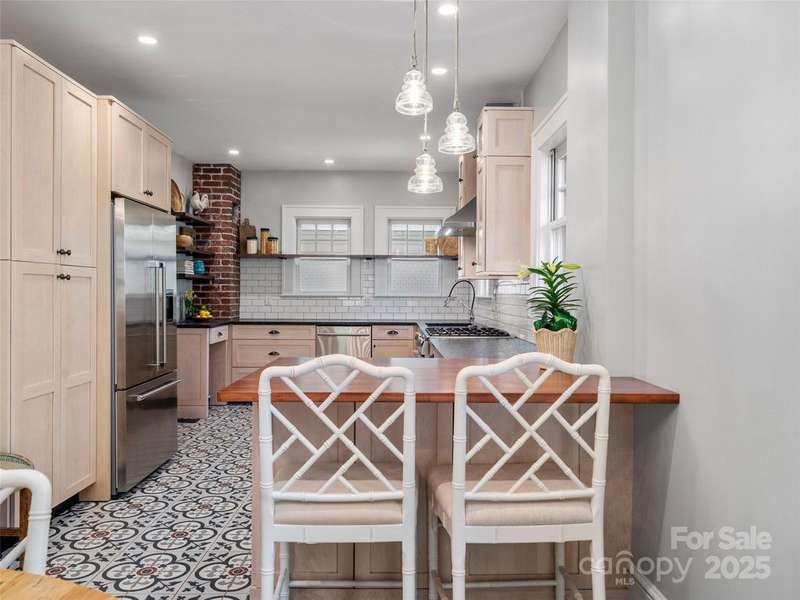 Timeless Montford home combines luxurious updates while honoring classic, historical charm. The impeccably maintained home offers beautiful indoor and outdoor living. Enjoy the large, new back deck overlooking the trees and fenced back yard, or relax on the cozy covered side porch. The living room boosts natural light, newly replaced hardwood flooring and elegant light fixtures. The kitchen, recently remodeled by The Hands of Sean Perry, includes newer: appliances, hardware, cabinetry and lighting with a touch of original exposed brick for highlight. The primary bedroom includes a remodeled ensuite bath; custom spalted maple vanity with travertine, dual shower heads, and walking closet. Located 1 mile from downtown Asheville, on a quiet, tree-lined street, this home is truly a Montford treasure. *Be sure to check out the ?Improvements" attachment for the many more luxurious features , including: on-demand hot water, outdoor stone-work, custom window treatments, tilt-in windows, etc.