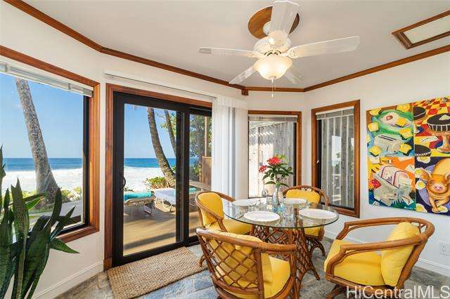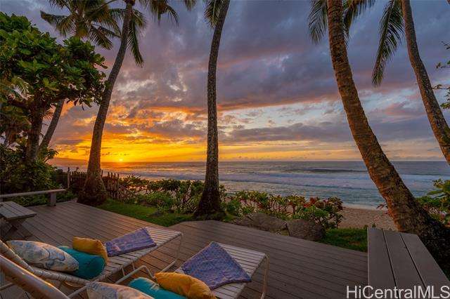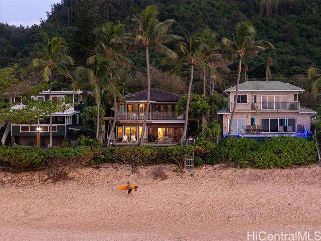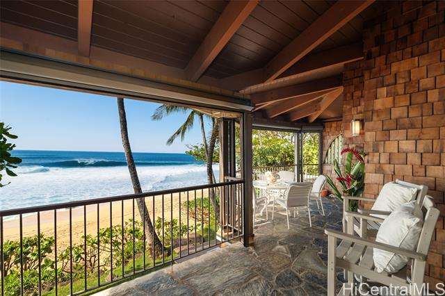 Front and center at Pipeline ~ absolutely unbeatable view into the most famous wave in the world! Relax in the comfort of your living room, downstairs open lanai, upstairs bedroom lanai or beautifully landscaped yard and watch the best surfers in the world take on this incredible iconic wave. This home has had only one adoring owner for 35 years and has been meticulously maintained as a family home. From first glance, the home will reveal that it has always been carefully maintained with detail, love and gratitude. From the cedar shake exterior siding and roof to the koa floors inside, high-quality appliances AND legal seawall you will feel surrounded by a sense of confidence, charm & security. Also includes outside hot water shower. This turn-key, well-built, fully-furnished beautiful home and property is available now. Shown to qualified Buyers by appointment only. Listing agent must be present.