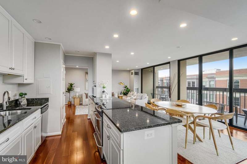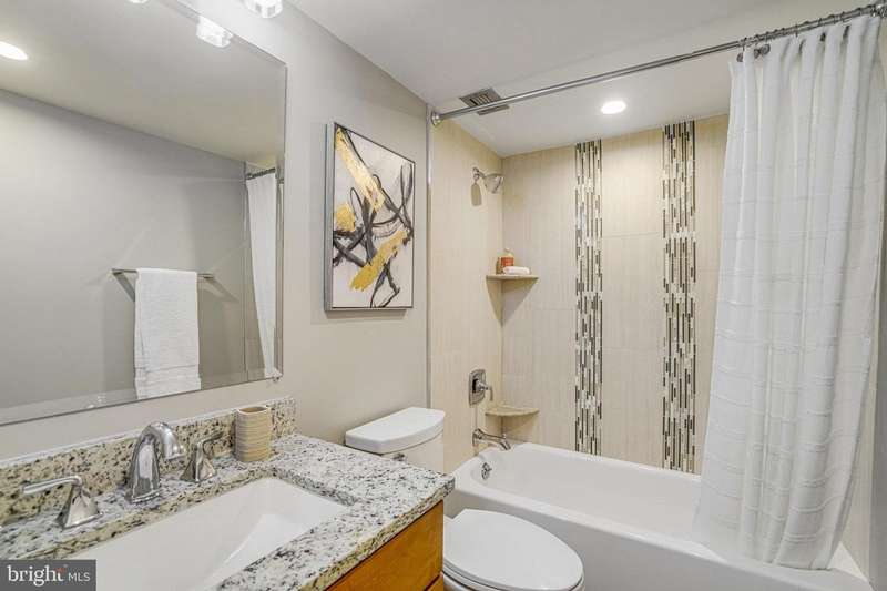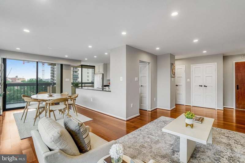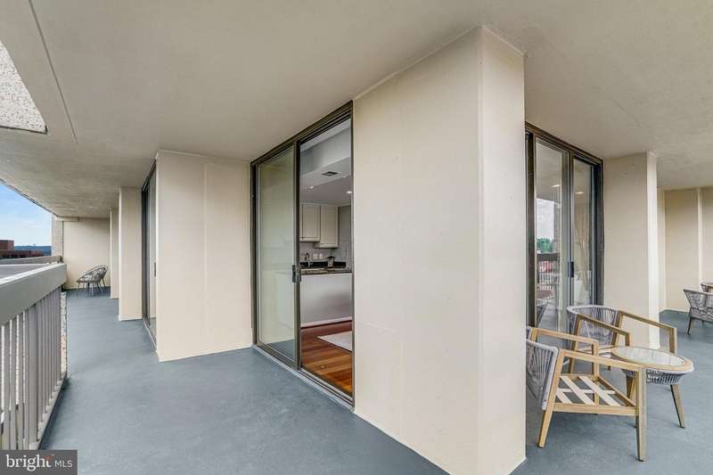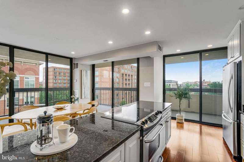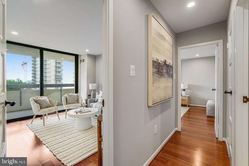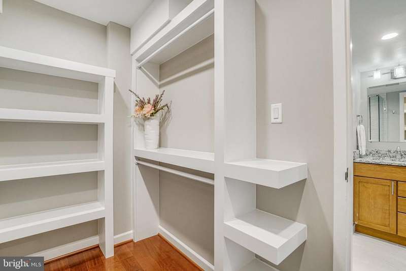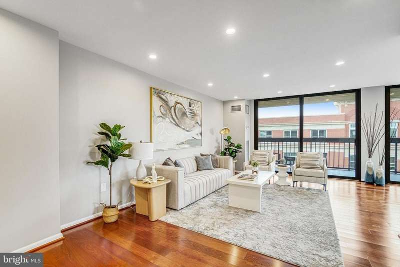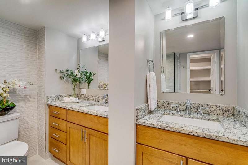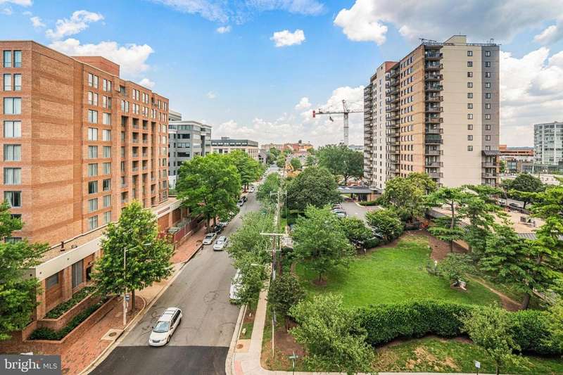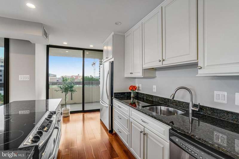 Impeccable re-imagined and renovated two-bedroom two bath residence at Alexandria House. This seventh-floor condo with views of the Potomac and charming rooftops of Old Town Alexandria, afforded through a northwest corner of floor to ceiling glass that spans the entire rear and front sides of the property. Updated and refreshed throughout with new ceiling LED recessed lights in every space. Brazilian Cherry flooring featured in all the living spaces. You are greeted as you enter the open concept main salon and living space with 8 ft ceilings and sweeping walls of sliding glass. A main living area, and connected dining space sit in front of the open kitchen island with granite counters, stainless appliances, and built in microwave hutch, custom under-mount lighting and recessed lights that communicate nicely with the dining and living rooms. The kitchen has ample cabinet space, a full depth refrigerator, and pantry spaces. The primary bedroom has a walk-in closet with custom shelving, double racks and long hanging spaces. The primary bath includes dual sink separated vanities, a walk-in shower with custom frameless glass shower door with Granite and marble that accentuate a timeless and modern look. Sliding doors lead to the exterior 85 ft wrap around balcony offering plenty of space for your grill. The second bedroom features ample closet spaces with double hanging racks, custom shelving, and direct access to the same balcony. The second bathroom features a soaking tub. A separate laundry closet with new stackable washer and dryer finishes the space. Two parking spaces, 329 and 330 on B2 and a storage unit also convey with the sale. Building offers amazing amenities; 24-hour concierge and security, a rooftop pool and sun deck, party room with full kitchen and expansive balcony with Potomac River and DC Monument vistas. Dual saunas, a state of the art weight room and gym, a meeting room, library, and print and copy center, and a dedicated Amazon package room. Dedicated bike room, EV Charging stations and four elevators service the tallest building in Old Town. A dedicated community park and extensive common areas abound. Condo fee includes all utilities. A delightful modern masterpiece, with charming features and high-end upgrades with enough space to spread your wings in the comfort of the best managed condominium in Old Town, steps to shopping, the Potomac River and easy access to Metro, the Airport and DC and beyond.