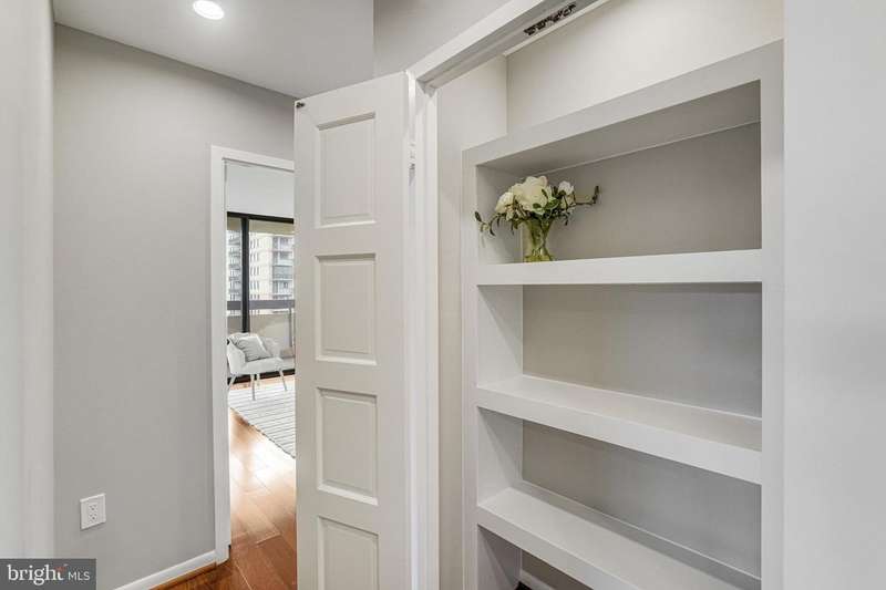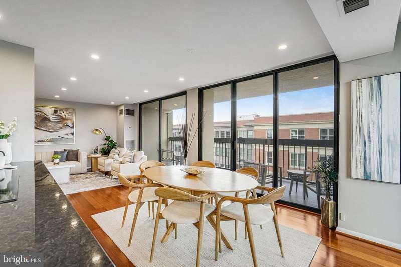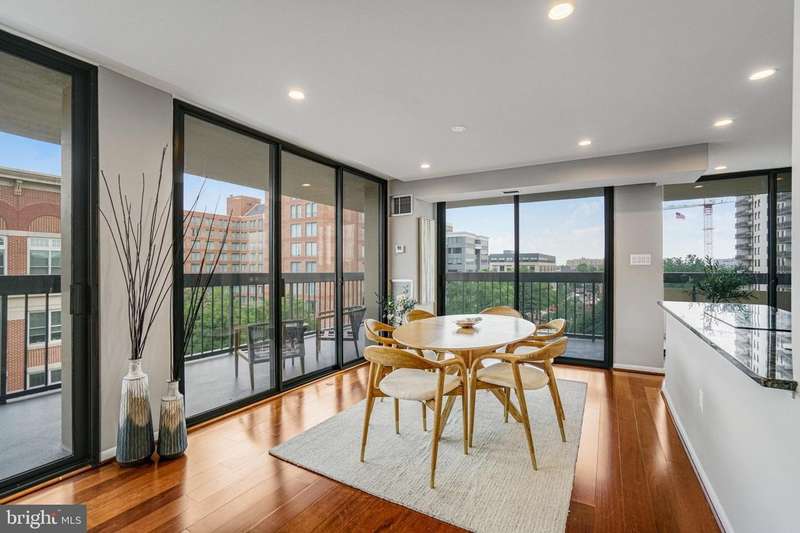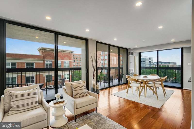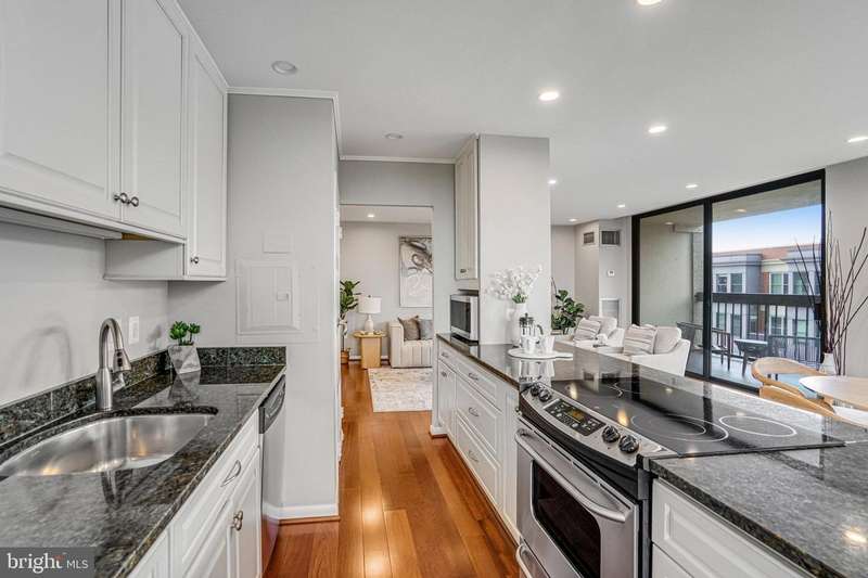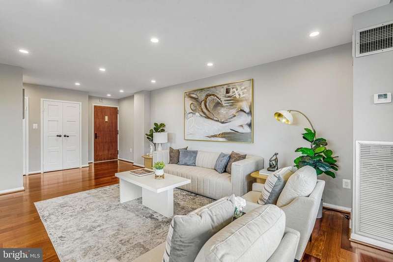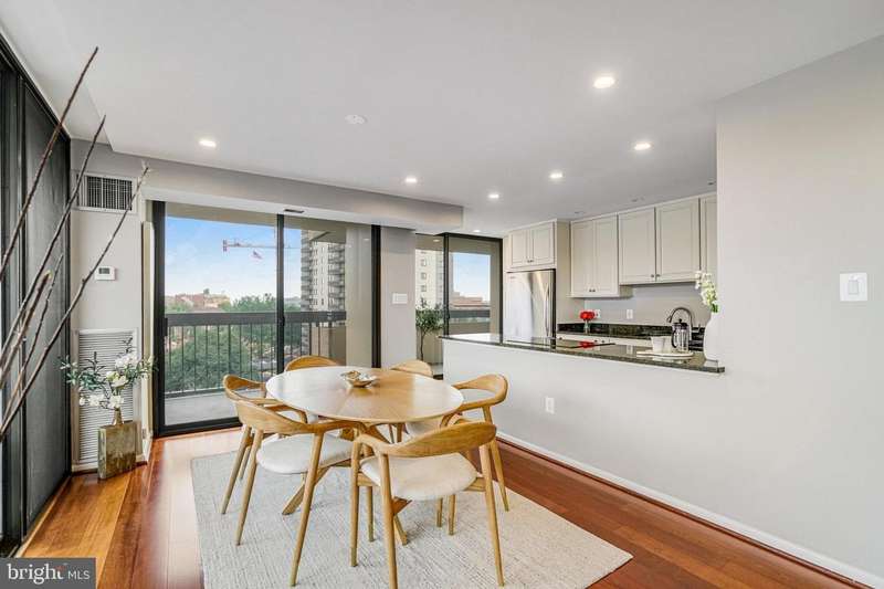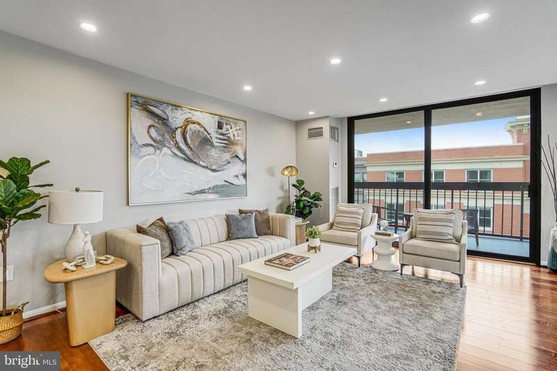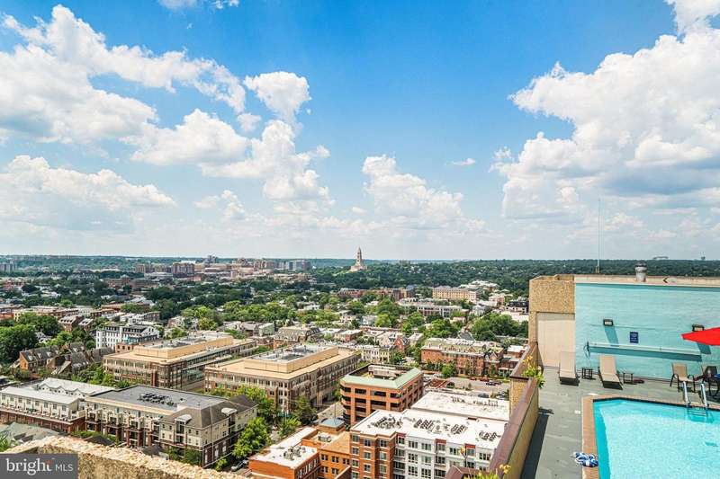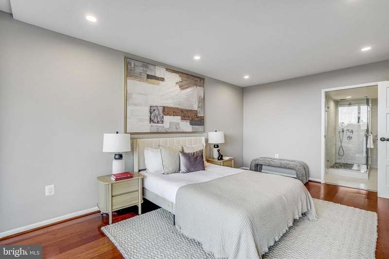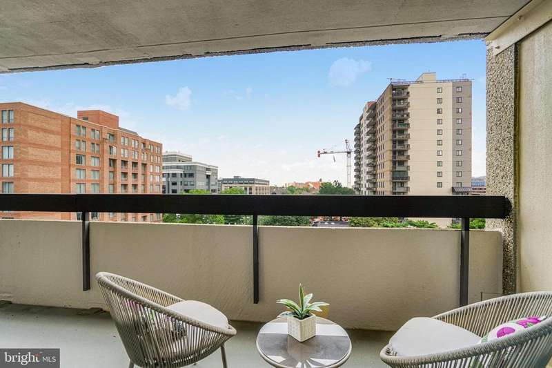Impeccable re-imagined and renovated two-bedroom two bath residence at Alexandria House. This seventh-floor condo with views of the Potomac and charming rooftops of Old Town Alexandria, afforded through a northwest corner of floor to ceiling glass that spans the entire rear and front sides of the property. Updated and refreshed throughout with new ceiling LED recessed lights in every space. Brazilian Cherry flooring featured in all the living spaces. You are greeted as you enter the open concept main salon and living space with 8 ft ceilings and sweeping walls of sliding glass. A main living area, and connected dining space sit in front of the open kitchen island with granite counters, stainless appliances, and built in microwave hutch, custom under-mount lighting and recessed lights that communicate nicely with the dining and living rooms. The kitchen has ample cabinet space, a full depth refrigerator, and pantry spaces. The primary bedroom has a walk-in closet with custom shelving, double racks and long hanging spaces. The primary bath includes dual sink separated vanities, a walk-in shower with custom frameless glass shower door with Granite and marble that accentuate a timeless and modern look. Sliding doors lead to the exterior 85 ft wrap around balcony offering plenty of space for your grill. The second bedroom features ample closet spaces with double hanging racks, custom shelving, and direct access to the same balcony. The second bathroom features a soaking tub. A separate laundry closet with new stackable washer and dryer finishes the space. Two parking spaces, 329 and 330 on B2 and a storage unit also convey with the sale. Building offers amazing amenities; 24-hour concierge and security, a rooftop pool and sun deck, party room with full kitchen and expansive balcony with Potomac River and DC Monument vistas. Dual saunas, a state of the art weight room and gym, a meeting room, library, and print and copy center, and a dedicated Amazon package room. Dedicated bike room, EV Charging stations and four elevators service the tallest building in Old Town. A dedicated community park and extensive common areas abound. Condo fee includes all utilities. A delightful modern masterpiece, with charming features and high-end upgrades with enough space to spread your wings in the comfort of the best managed condominium in Old Town, steps to shopping, the Potomac River and easy access to Metro, the Airport and DC and beyond.