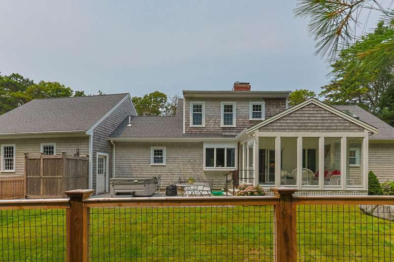 Nestled off of a quiet cul-de-sac, this classic 3-bedroom, 2.5-bath Cape-style home offers the perfect blend of privacy and charm. Perched on a serene hilltop, the property is surrounded by nature, providing a peaceful retreat just minutes from all the Cape has to offer.Inside, enjoy a spacious layout with a bright and airy living room, a cozy fireplace, and a thoughtfully designed kitchen that opens to the dining area ideal for entertaining. The first-floor primary suite includes a private bath, while two additional bedrooms upstairs share a full bath. A half bath is conveniently located on the main level.Additional features include hardwood floors, a full basement, and a large 3 season room overlooking the tranquil backyard--perfect for summer gatherings or quiet mornings with coffee. Offering an outdoor shower and jacuzzi, along with a nice patio.Whether you are looking for a year-round residence, vacation getaway, or investment property, this hilltop Cape Cod gem is ready to welcom