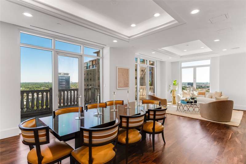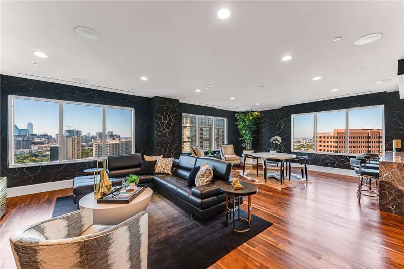 Recently renovated with over 6,600+ SF of luxury urban living! Restricted access elevator opens directly into both levels of this custom, contemporary, two-story penthouse. Beautiful walnut floors, intricately detailed African Sapele Mahogony paneling, four spacious bedrooms, including a large primary suite with terrace and stunning views of downtown. Home features flexible living and entertaining spaces, including a 2,200-bottle wine room. Chefs kitchen with Calcutta stone countertops, SubZero refrigerator and Wolf commercial gas oven adjoins a large dining room with wet bar. Home conveys with four parking spaces and two storage spaces.