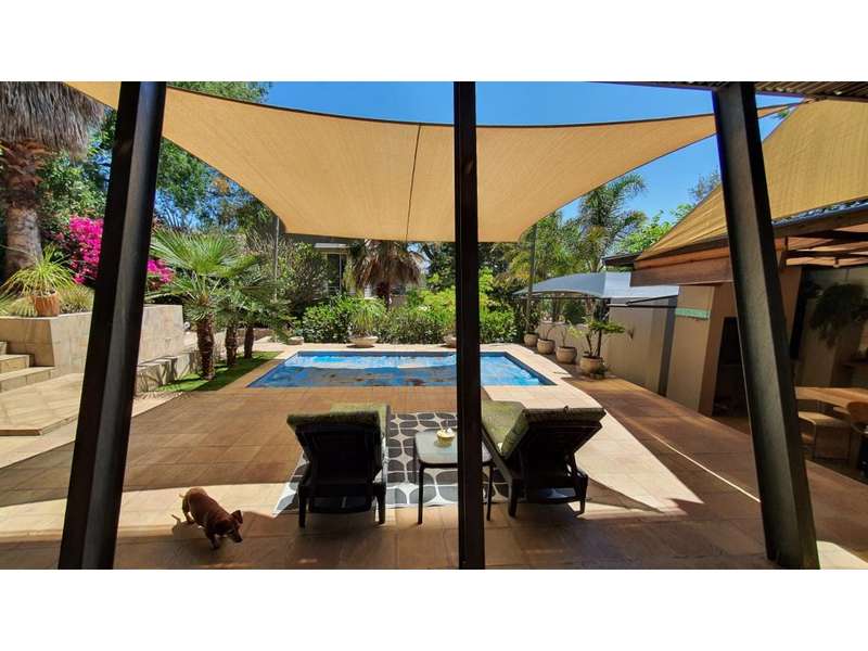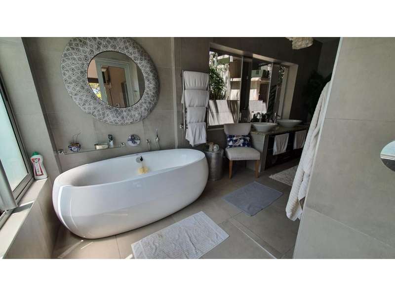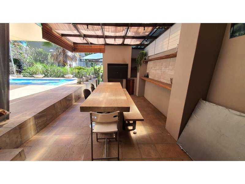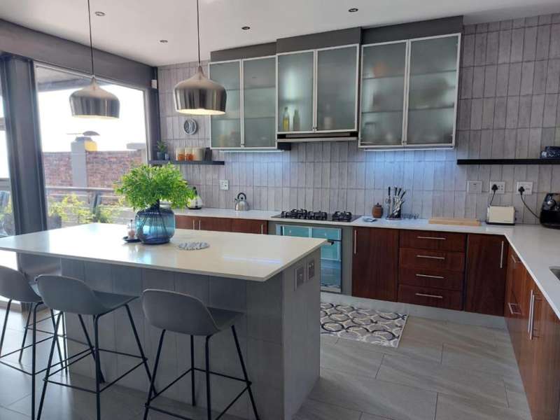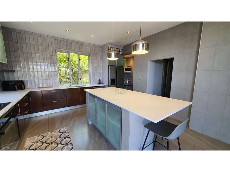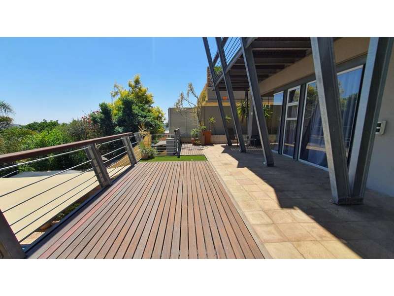 Modern Masterpiece with Income-Generating Cottages in Kensington Experience unparalleled luxury and breathtaking views in this ultra-modern Kensington residence. This exceptional property seamlessly blends sophisticated design with functional living spaces, creating a truly unique and desirable home. A striking entrance hall sets the stage for the home's elegance, leading to expansive living and dining areas bathed in natural light from large windows and stackable doors. These seamlessly connect to outdoor spaces, perfect for both relaxation and entertaining, showcasing spectacular views of the Kensington suburbs. The chef's kitchen is a masterpiece of contemporary design, featuring sleek finishes, ample storage, and a functional layout that effortlessly integrates with the living and dining areas. Whether preparing a casual meal or hosting a lavish gathering, this kitchen caters to every culinary need. The downstairs level boasts three en-suite bedrooms, each with generous built-in cupboards. The main bedroom is a true retreat, complete with a luxurious walk-in dressing area and a spa-like bathroom featuring both indoor and outdoor showers. A dedicated entertainment zone awaits, including a versatile lounge/man cave and an adjacent wine room/ladies' cave with a bar and seating area. Step outside to a spacious deck and sparkling swimming pool, surrounded by beautifully landscaped gardens, a tranquil koi pond, and a wooden deck with stainless steel balustrading. A rooftop viewing deck provides panoramic views, ideal for sunset cocktails or entertaining under the stars. This property also offers excellent income potential with two newly renovated upstairs cottages and a third cottage adjacent to the double garage. Secure access is provided via an automated gate leading to a long paved driveway and double garage. A guard hut provides additional peace of mind. This ultra-modern Kensington home is a rare find, offering a perfect combination of luxury, comfort, and income potential. Don't miss the opportunity to experience this exceptional property ?Çô schedule your viewing today!