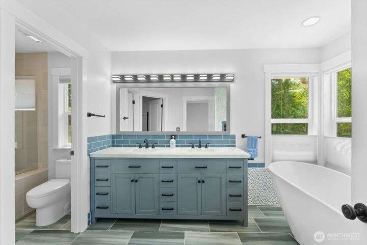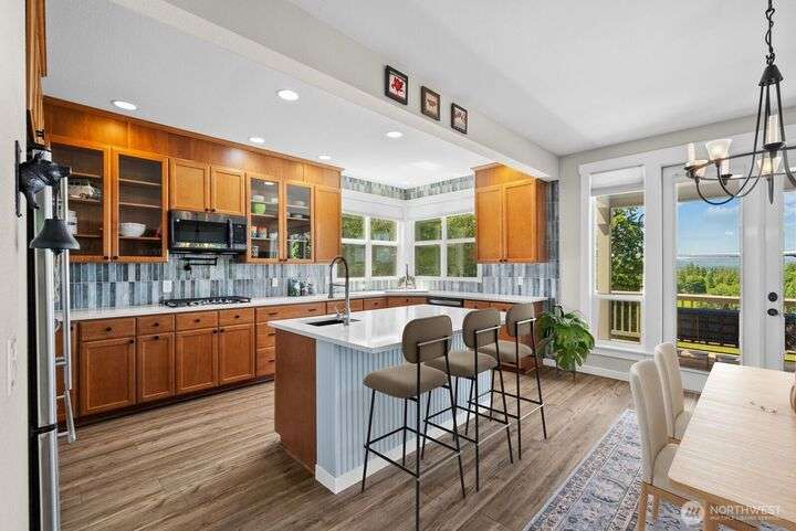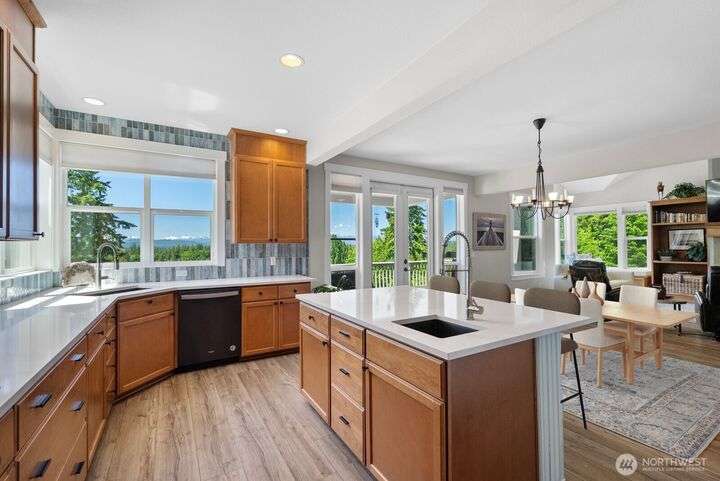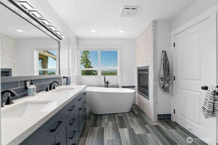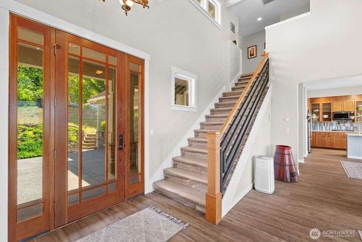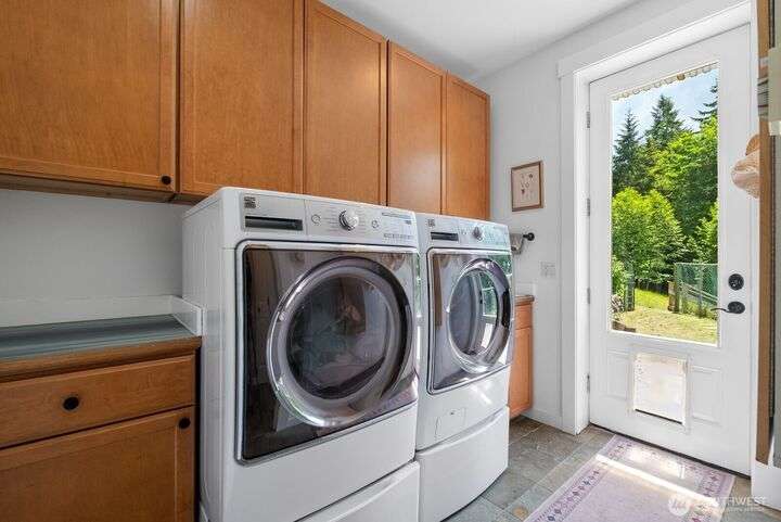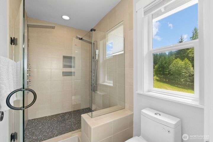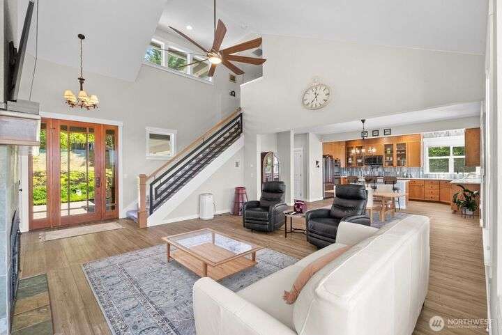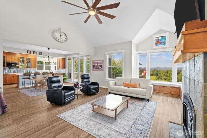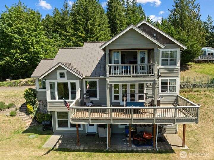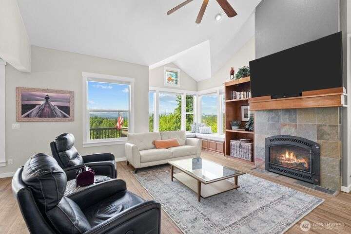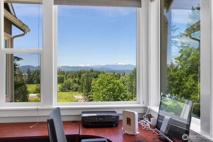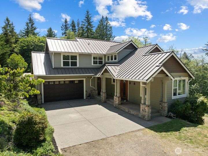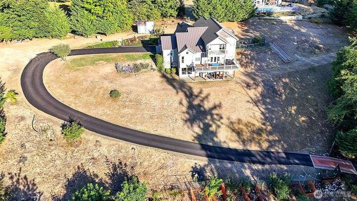 5.49% ONE YEAR INTEREST RATE BUY DOWN! A NEW PAVED DRIVEWAY INSTALLED! This NW contemporary home on 2.5 secluded acres W/ stunning Olympic Mtn & territorial views, every day is paradise. The home features energy efficient geothermal heated floors throughout. Entering the home, you are immediately captivated by the breathtaking views through the large wall of windows, soaring vaulted ceilings & the large gas fireplace creates the perfect focal point. The chef will love the updated island kitchens extensive counter space & cabinet storage. Upstairs, the impeccable primary suite features a gas fireplace, stunning 5-piece ensuite & private covered decks spectacular views. Downstairs has big bonus room; large family room, wine cellar & 3/4 bath.