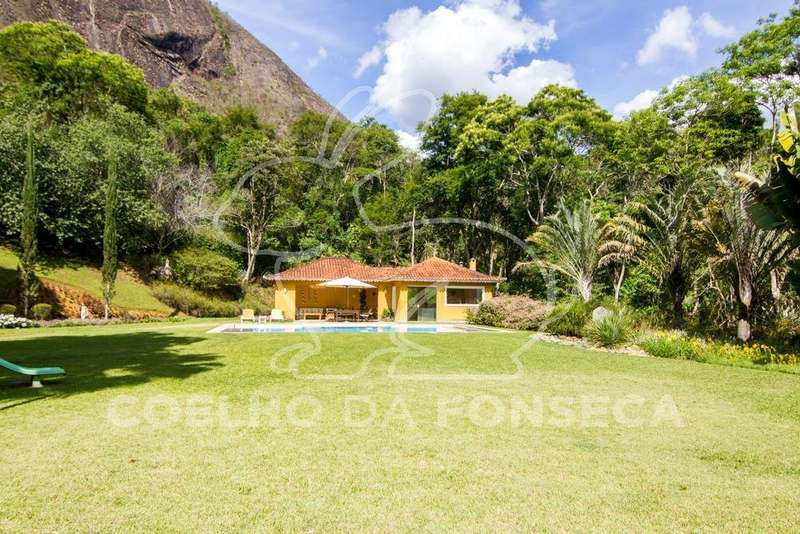 Linda propriedade no melhor bairro de Petrópolis, com amplas salas de estar, jantar, TV, leitura, ecritório, lareiras e varandas. Estrutura de laser com campo de futebol, piscina, churrasqueira, sauna, forno e fogão a lenha, casa de boneca, e casa de hópedes com mais dois quartos, cozinha e sala, Alem da casa do caseiro. E uma adega para 500 garrafas. Em meio a exuberância da natureza, próxima de todas as facilidades locais, num terreno com 80 mil metros. Imperdível !