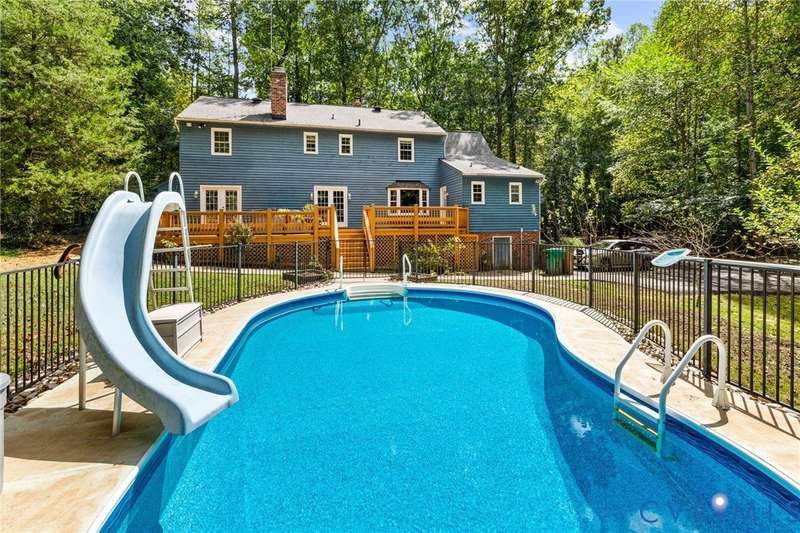 Welcome to your dream home-a perfect blend of country living & modern convenience! Situated on almost 1.5 acres, this well maintained & tastefully updated home offers 4 bedrooms, 2.5 baths & a host of high-end features that make it truly one of a kind! Park the car on the recently resealed driveway & step inside to find gorgeous wood floors throughout & a thoughtfully renovated interior. A wood stove is in front, offering warmth even when the power is out! The heart of the home, the kitchen, was updated just 4 1/2 years ago, and boasts granite counters, custom cabinetry, large island, gas cooking and stainless appliances-perfect for everyday living & entertaining alike! Off the kitchen is a nice sized dining area as well as a family room with a cozy fireplace! The first floor primary suite is a true retreat, featuring another cozy fireplace, generous walk in closet, private bath & access to the deck! The half bath and laundry room were both renovated only a few years ago. Movie nights will never be the same in your true media room-complete with theater seating for 11, a large screen and all the components included for a premium cinematic experience. Upstairs, you will find a second full bath, also completely renovated recently as well as 3 large bedrooms with wood floors, recessed lights and large closets. The bonus room is currently being used as an office but could easily become a fifth bedroom. The large open space on the second level offers lots of flexibility! The 2 heat pumps were both replaced within the last 5 to 7 years! And a generator will keep all essential things going in the house during any power outages! Outside, enjoy your private oasis with an in-ground pool and plenty of space to relax and entertain on the huge deck or in the hot tub. Despite its serene, country-like setting, this home is just minutes from shopping, dining, and other conveniences offering the best of both worlds. Don't miss your chance to own this unique, move in ready home that truly has it all!
