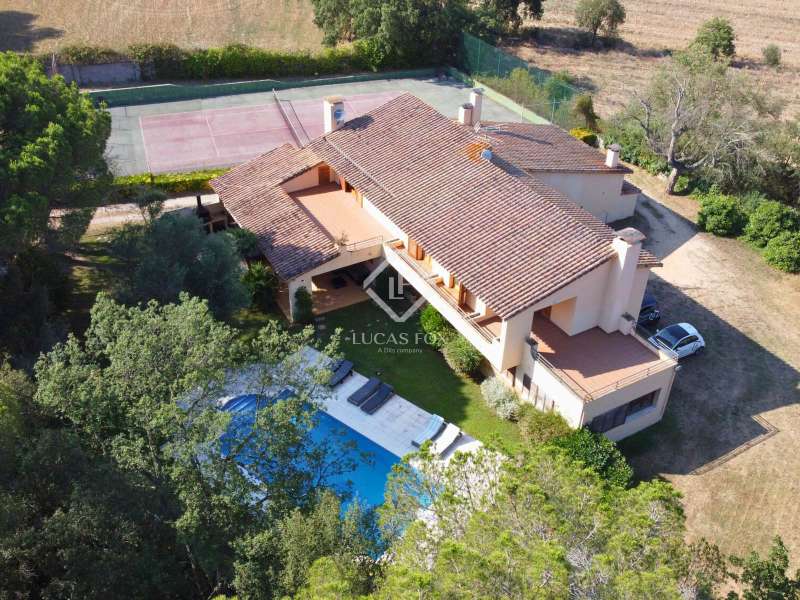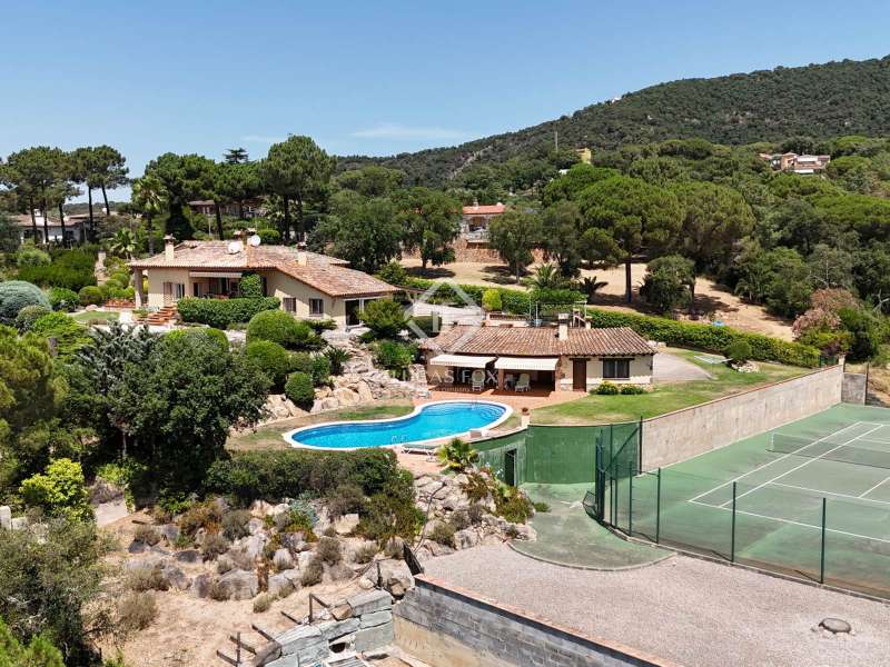 This villa is located in Bell Lloc, in a quiet residential area surrounded by nature, in Santa Cristina d'Aro. The house sits on a 4,657 m² plot that has a wonderful Mediterranean garden with mountain views, a barbecue area, as well as a fantastic swimming pool and tennis court. It is a very comfortable villa, distributed on one floor and kept in perfect condition. The main house consists of a spacious hall, two lounges or living rooms with a fireplace and access to the garden, a recently renovated kitchen, three bedrooms, two bathrooms and a wine cellar. The house has a second building that consists of a guest bedroom, a bathroom, the barbecue area right next to the pool area and the garage. In addition, the house has a well that supplies water for the irrigation of the property throughout the year at no cost.