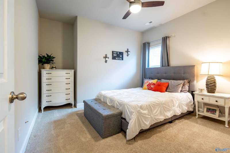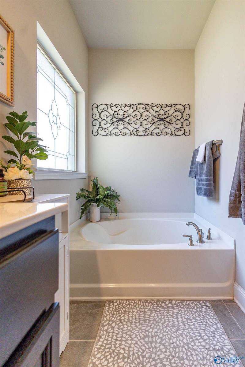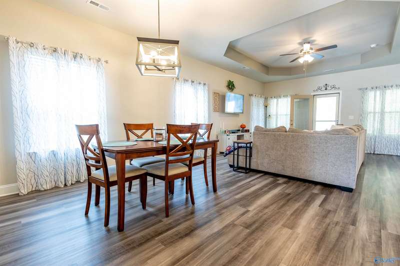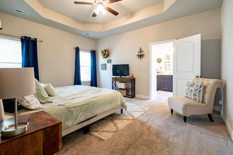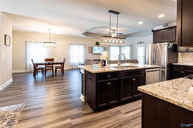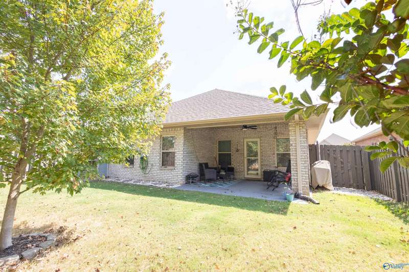 From the moment you walk in, you will love open floor plan, 10' trey ceilings, large island and more. With 4 BRs and 3 BAs, you will have plenty of space to spread out or use one of the bedrooms as a home office. The living area is warm and inviting with LVP flooring and high ceilings. The kitchen has granite countertops, gas range, large island, ample storage along with a roomy dining area. Retreat to the oversized master bedroom with a large walk in closet and complete with a soaking tub and separate shower. Relax in the private backyard under the covered patio, or enjoy a peaceful walk through the serene neighborhood. Close to Research Park, Redstone Arsenal, shopping & restaurants.