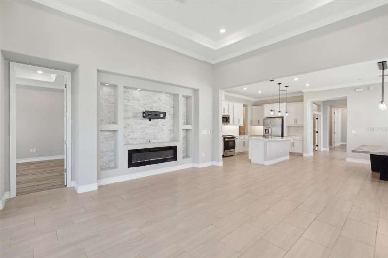 Under contract-accepting backup offers. A Beautiful Villa with open concept floor plan at ESTANCIA ( SANTERI Sub-division) one of the most desirable communities in Wesley Chapel with excellent schools and close to the Hospitals, Wiregrass Mall, Restaurants and only 10 min from I-75. This 2/2 house was built with many upgrades like crown molding, tile floors in the common areas + office/study and 2 full baths and laminated floors in the bedrooms, the living room has an accent wall with a built in fireplace, large center island with breakfast bar seating overlooking the living space, natural gas range, stainless steel appliances, and large walk in pantry, the master bath with double sink vanities, walk-in frameless shower, linen closet, private toilet, and huge walk in closet . Spacious covered back porch to relax on! Residents also have access to the Estancia’s main amenity center providing a community pool with fun slide, lap pool, fitness center, club house, tennis and basketball courts, playground, dog park, and miles of walking trails.