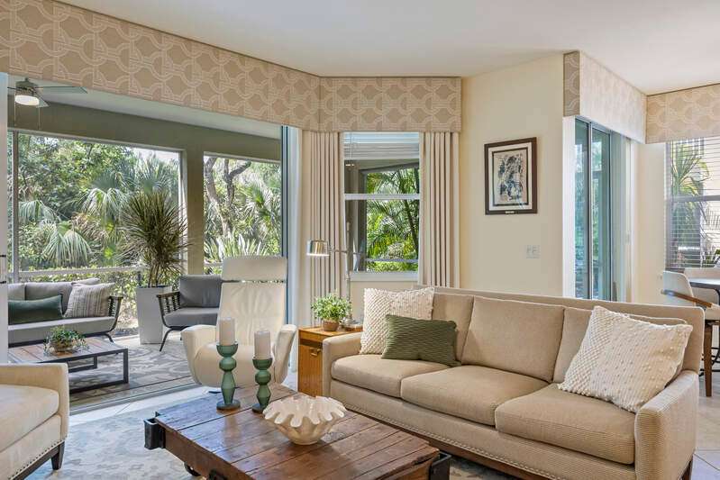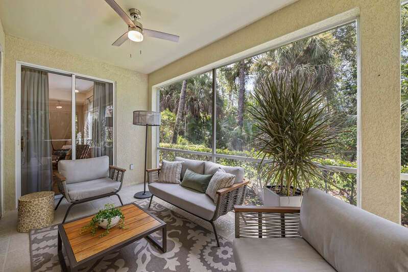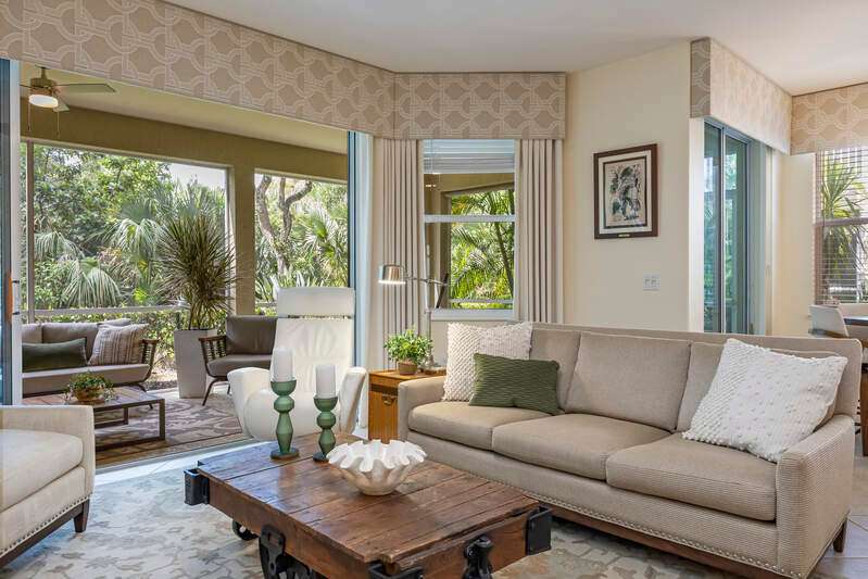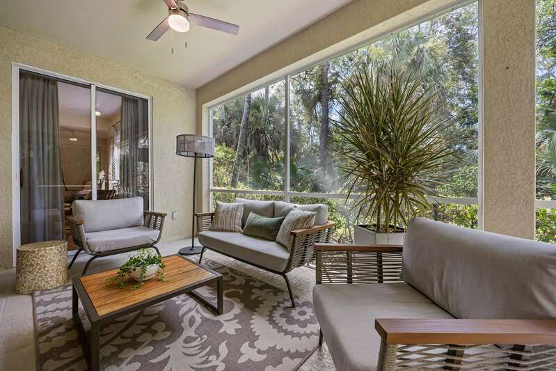 Light and bright! Discover the perfect blend of luxury, style, and tranquility in this beautifully appointed 3-bedroom, 2-bath home, located in the highly sought-after gated community of Tarpon Bay. This residence boasts a private setting, thoughtfully designed to offer peace and seclusion with no road noise, ensuring a serene living environment. Step inside to an open and modern floor plan featuring professional designer finishes throughout. The living spaces are illuminated by striking designer lighting, while custom window treatments add an extra layer of sophistication. The kitchen is a chef's dream, adorned with granite countertops, natural gas cooking and outfitted with top-of-the-line appliances. Tarpon Bay is renowned for its incredible amenities, elevating the standard of resort-style living. Residents enjoy access to a breathtaking infinity pool, ideal for relaxing on sunny afternoons. For the active lifestyle, the community features clay tennis courts and a vibrant pickleball community, perfect for socializing and staying fit. Nature lovers will appreciate the three sparkling lakes that dot the landscape, adding to the beauty and tranquility. The home's location is unbeatable-just moments from world-famous beached and the convenience of RSW airport, making both leisure and travel effortless. Experience the best in modern Florida living: a sophisticated home in Tarpon Bay, surrounded by luxury amenities, natural beauty, and a welcoming, active community. NEW Roof. NEW Exterior Paint. NEW interior upgrades. The amenities, Clubhouse, Cable, Wi-Fi, Water, etc. are included. No special assessments.