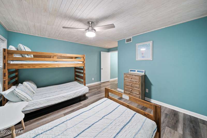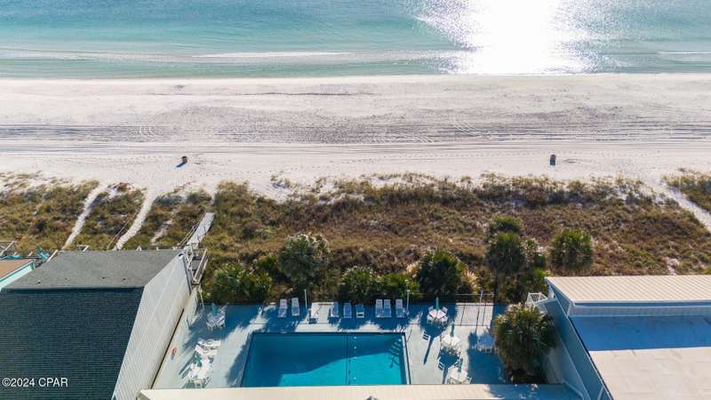 'CURRENTLY UNDER CONTRACT, SELLER WILL CONSIDER BACKUP OFFERS' Step into your dream coastal retreat with this stunning 3-bedroom, 3-bathroom Gulf-front townhouse with large private garage, just steps away from the soft white sands of Panama City Beach. With over 250 square feet of private balcony space, you'll enjoy breathtaking, unobstructed Gulf views from both the first-floor and second-floor balconies.The large first-floor balcony is perfect for relaxing or grilling with family and friends, while a private staircase offers direct access to the beach, no elevators required! This exceptional townhouse offers the feel of a beach house at a fraction of the price of a Gulf-front single-family home, all while maintaining the charm and tranquility of the West End.Inside, you'll find a spacious open floor plan with updated bathrooms and solid surface flooring throughout. The large master suite boasts its own private Gulf-front balcony, along with a generous walk-in closet.Recent updates include a completed exterior renovation with new Hardi plank siding, stairs, extended deck, hurricane impact windows, and a private parking garage.This rare opportunity to own a Gulf-front townhouse is perfect for those seeking a private, peaceful oasis with all the convenience of beach access. Schedule a showing today and take advantage of this incredible opportunity to own a piece of paradise. Historical rental information available upon request.