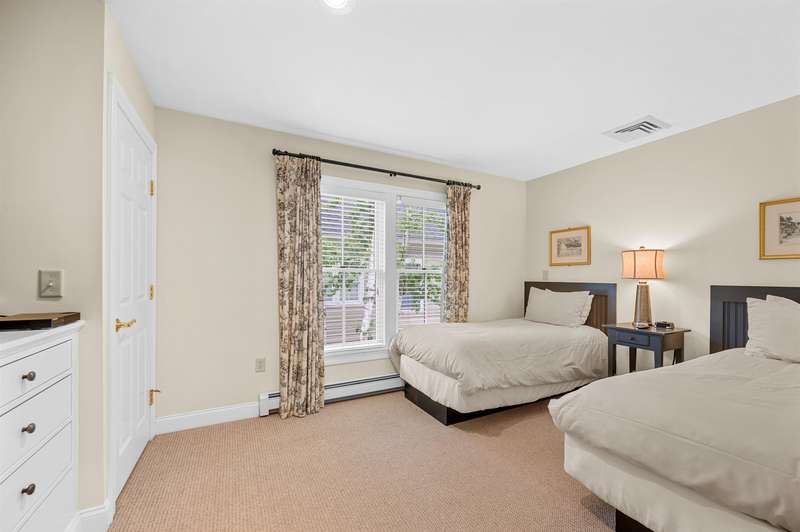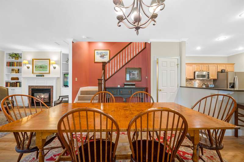 A charming New England town-home adjacent to the Green Mountain Inn located in the heart of Stowe Village It is ideal as an investment for your familys use or rental income. The first floor boasts an open layout with 9' ceilings, connecting the kitchen, dining, and living room areas, anchored by a cozy gas fireplace. From the living room, step out onto an 8 by 20 covered porchperfect for relaxing. A den on the first floor with a full bathroom offers additional private living or work space.. Well maintained and in excellent condition, this spacious residence features a large 19' by 24' master bedroom suite with a walk-in closet and a bathroom that includes a soaking tub/Jacuzzi and separate shower. There are also two additional guest bedrooms and another full bathroom on the second floor. Accessible from the kitchen/dining area, the partially finished basement includes a recreation area with a ping pong table, a utility and laundry room, a storage room, and a private exterior entran