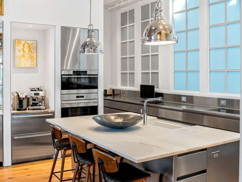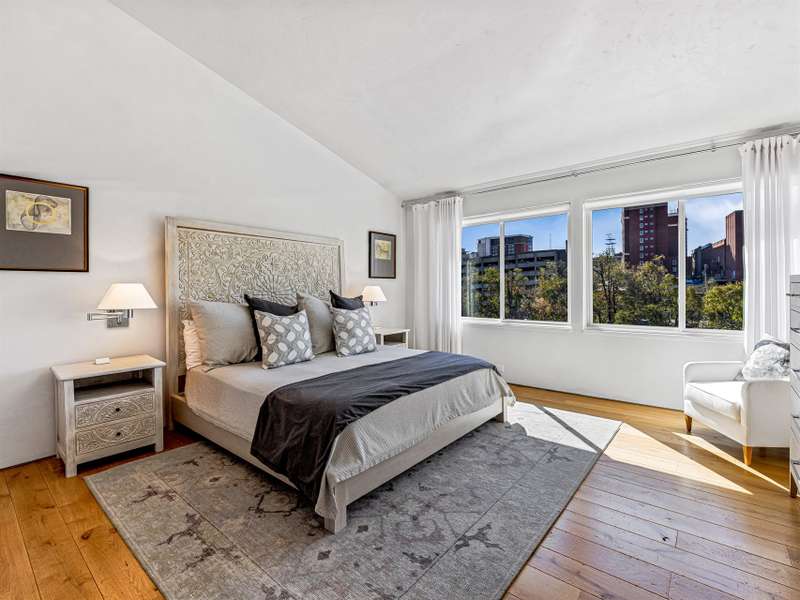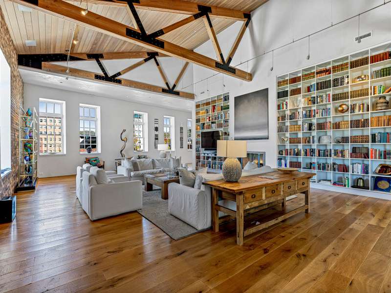 Timeless elegance and modern ease define this magnificent downtown Asheville home offering the highest level of luxury with design by George Studio, Inc, (NY) architecture. Custom details include wide plank flooring from France, marble baths by Ann Sacks, Venetian plaster walls, and Holly Hunt lighting. The soaring great room offers exposed beams and brick, highlighted by an expansive library wall. The large stainless kitchen and island compliment the open concept of this home. Enjoy two primary suites with stunning baths and a bright and sunny day room with views of downtown Asheville and the mountains beyond. This HGTV Award winning home includes a climate-controlled garage with four parking spaces and two large storage rooms. There is private direct elevator access to this reconstructed Richard Smith Building, (Architect of the Biltmore)condo with one-level living. Walk to Harris Teeter, Whole Foods, Trader Joe's. Outstanding luxury, striking from every angle!