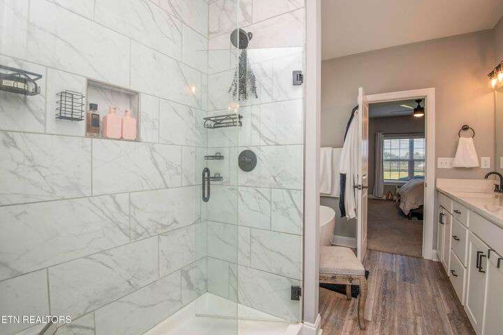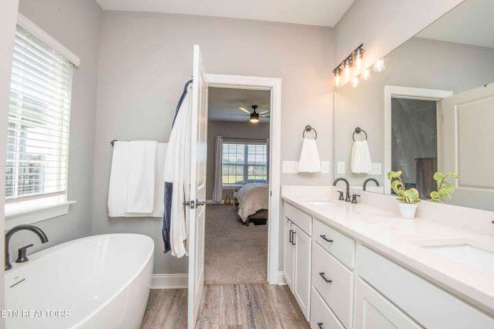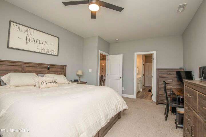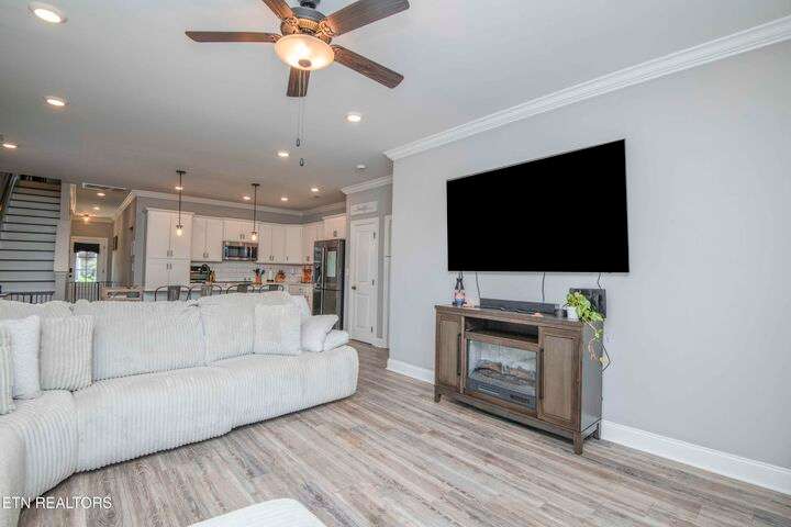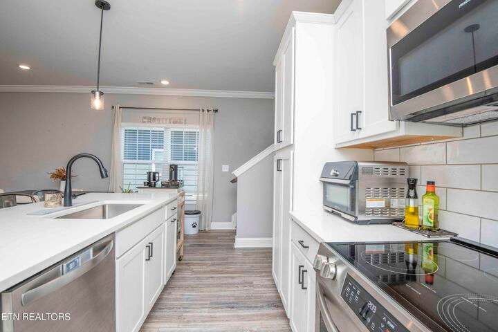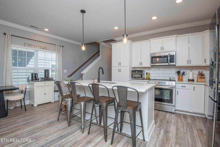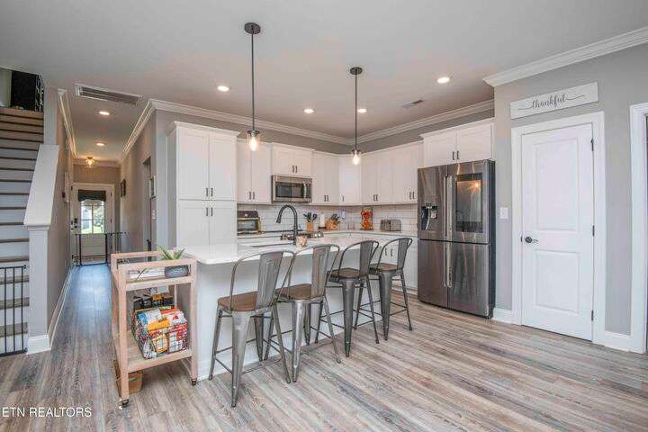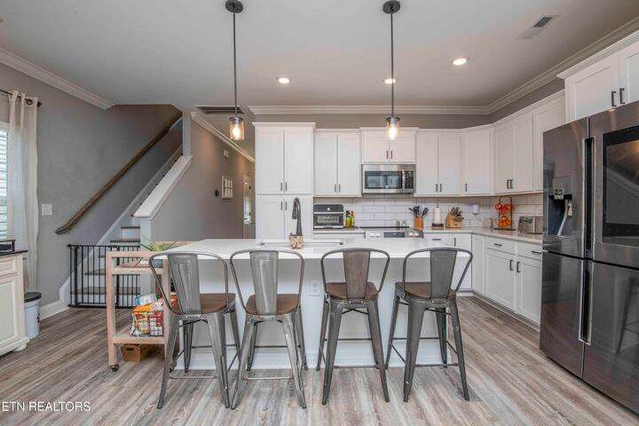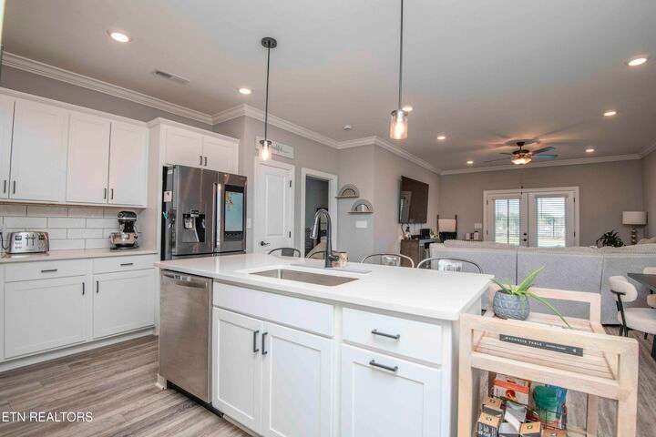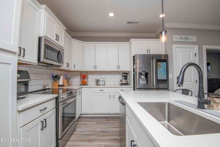 Welcome home to this beautifully customized 2024 Florence model home featuring 4 bedrooms, 2.5 baths, and 2,082 sq ft of stylish living space. Designed with family life in mind, this open-concept home is loaded with upgrades and modern finishes throughout. The main level boasts high-performance luxury vinyl flooring, while plush carpet adds comfort upstairs. Professionally installed window blinds and a tankless water heater for added comfort. The heart of the home is the open kitchen and living area, complete with a large island, farmhouse sink, quartz countertops, soft-close cabinetry, and a spacious pantry. From the living room, French doors open to a covered patio and fenced backyard-ideal for cookouts, playtime, and relaxing evenings outdoors. The main-level owner's suite offers a spa-like bathroom with dual quartz vanity, a glass-enclosed walk-in shower, freestanding soaking tub, and a large walk-in closet. Upstairs you'll find three generously sized bedrooms, a full bath, and a flexible bonus room perfect for play, or movie nights. Located in Strawberry Hills, this family-friendly neighborhood offers a community pool, playground, clubhouse, pavilion, and sidewalks with a low HOA. Conveniently located near shopping, dining, and I-40, with downtown Knoxville just 10 minutes away, this home truly has it all. Don't miss your chance to own the perfect home for your family to grow, gather, and make lasting memories!