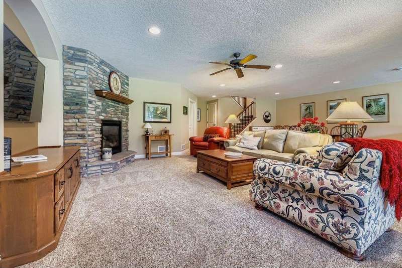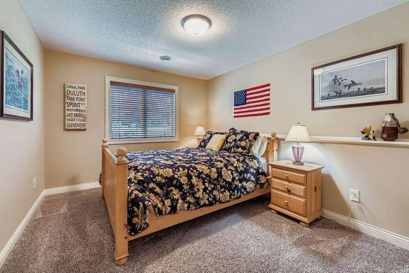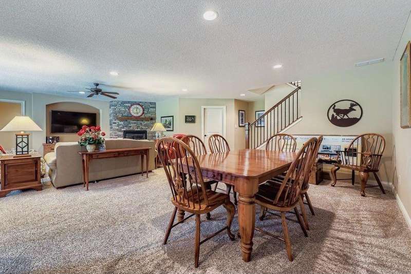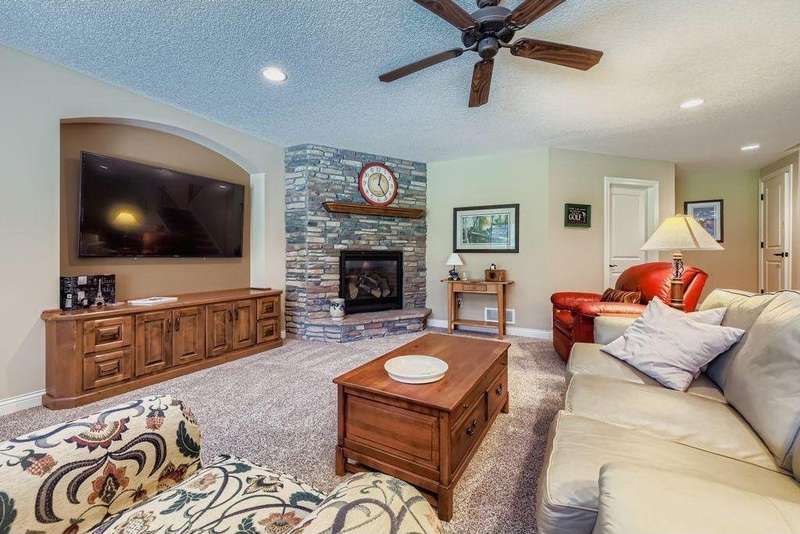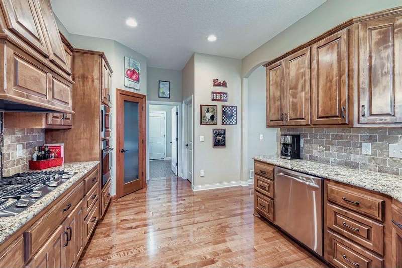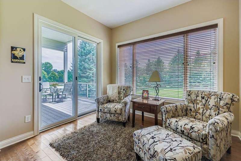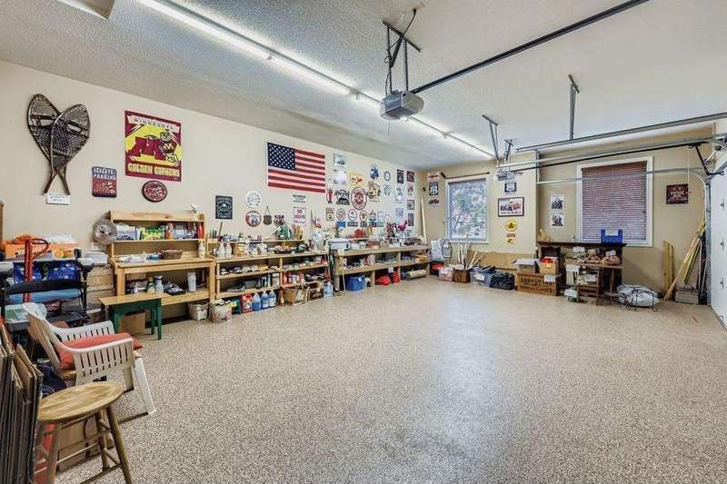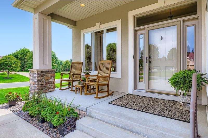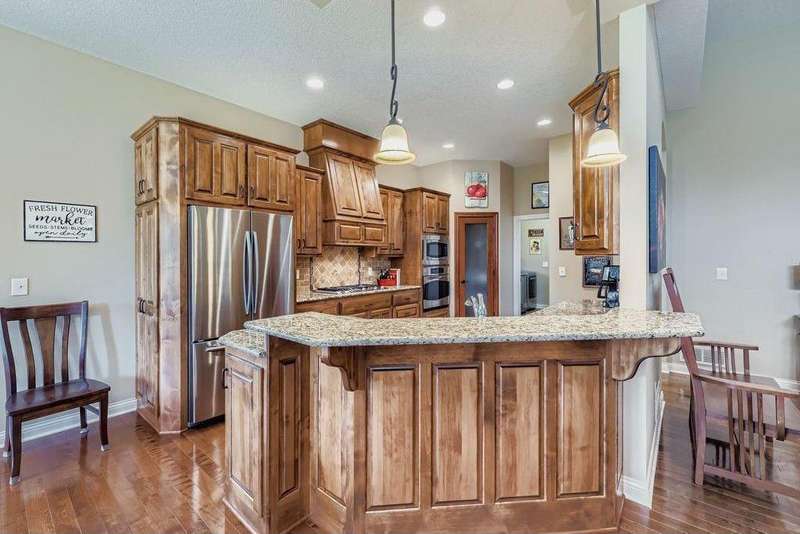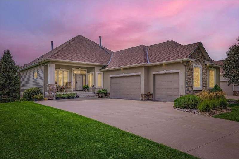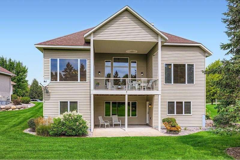 Welcome to The Lakes in Blaine! Step into this beautifully designed custom home built by Gorham builders featuring a spacious entryway and a convenient main-level office. The expansive living room boasts vaulted ceilings and a cozy gas fireplace, perfect for relaxing or entertaining. Owner’s Suite Retreat Enjoy a luxurious owner’s suite with generous walk-in closets and a spa-like bathroom complete with a deep soaking tub, custom tiled shower, and dual sinks. Chef’s Kitchen & Dining The kitchen offers granite countertops, a corner pantry, breakfast bar, and plenty of workspace. Adjacent to the informal dining room is a sunroom that fills the space with natural light. Outdoor Living Step out onto the maintenance-free deck and enjoy the privacy of your backyard oasis. The walkout lower level opens to a peaceful patio view—ideal for morning coffee or evening gatherings. Functional Features Main floor laundry includes a utility sink, and the oversized 3-car garage features durable epoxy flooring. Downstairs, you'll find a wet bar, flexible living space, a second gas fireplace, two additional bedrooms, and a ¾ bath—perfect for guests or entertaining. Community Perks The HOA covers lawn care, snow removal, and provides dock access to Sunrise lake. Located near the TPC golf course and National Sports Center, with a new roof installed in 2018.