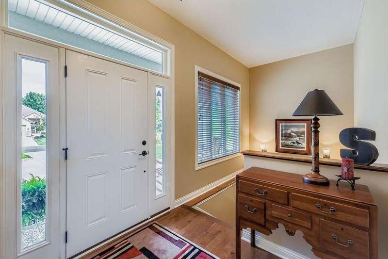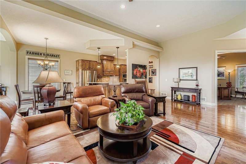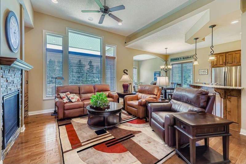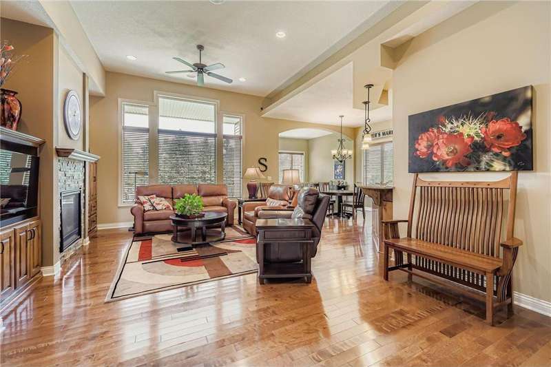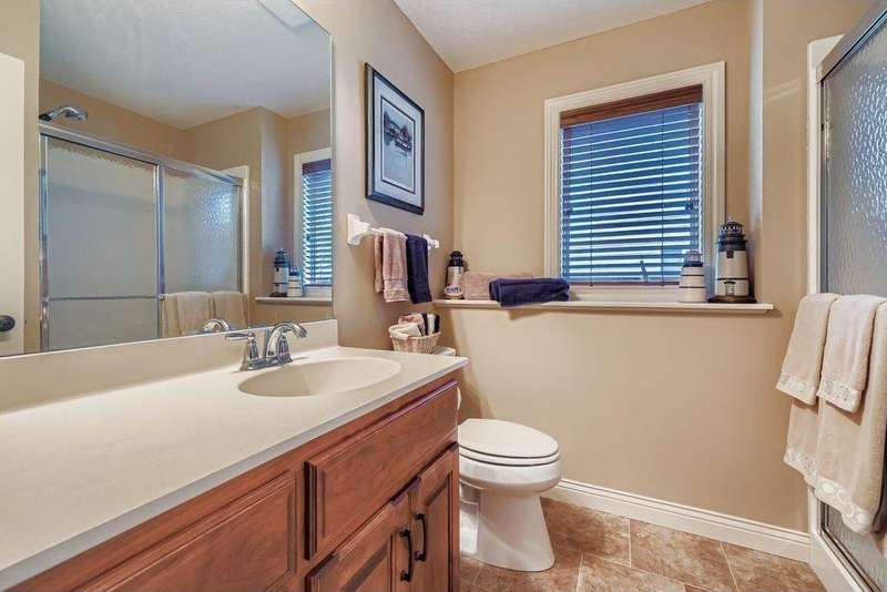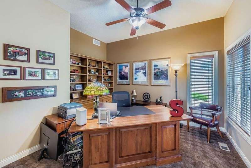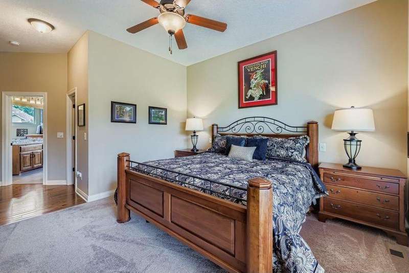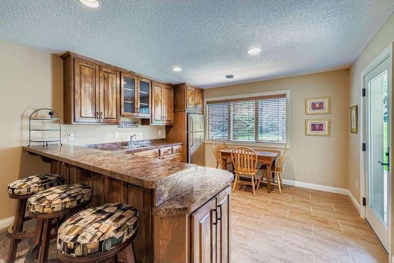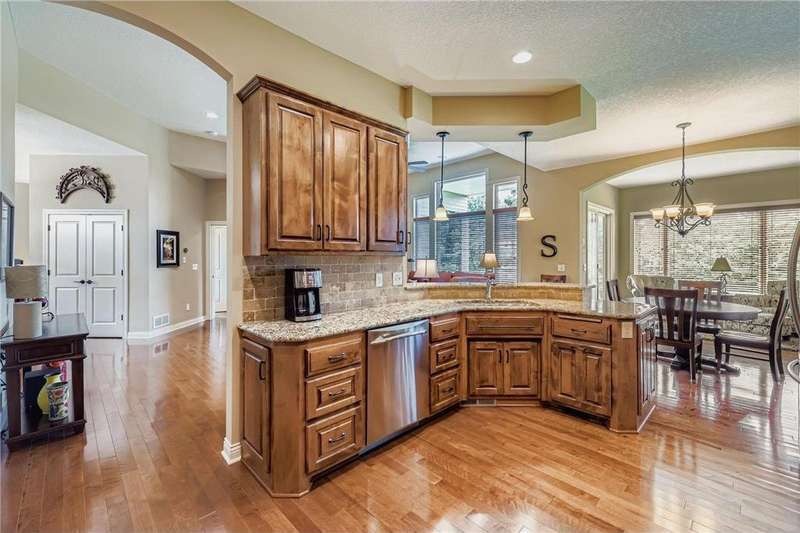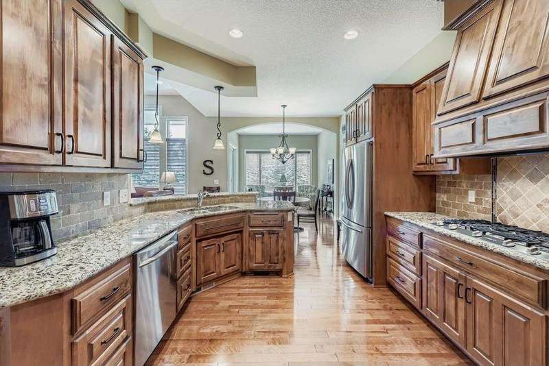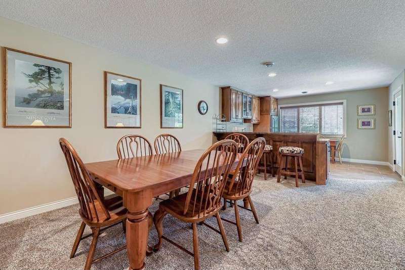 Welcome to The Lakes in Blaine! Step into this beautifully designed custom home built by Gorham builders featuring a spacious entryway and a convenient main-level office. The expansive living room boasts vaulted ceilings and a cozy gas fireplace, perfect for relaxing or entertaining. Owner’s Suite Retreat Enjoy a luxurious owner’s suite with generous walk-in closets and a spa-like bathroom complete with a deep soaking tub, custom tiled shower, and dual sinks. Chef’s Kitchen & Dining The kitchen offers granite countertops, a corner pantry, breakfast bar, and plenty of workspace. Adjacent to the informal dining room is a sunroom that fills the space with natural light. Outdoor Living Step out onto the maintenance-free deck and enjoy the privacy of your backyard oasis. The walkout lower level opens to a peaceful patio view—ideal for morning coffee or evening gatherings. Functional Features Main floor laundry includes a utility sink, and the oversized 3-car garage features durable epoxy flooring. Downstairs, you'll find a wet bar, flexible living space, a second gas fireplace, two additional bedrooms, and a ¾ bath—perfect for guests or entertaining. Community Perks The HOA covers lawn care, snow removal, and provides dock access to Sunrise lake. Located near the TPC golf course and National Sports Center, with a new roof installed in 2018.