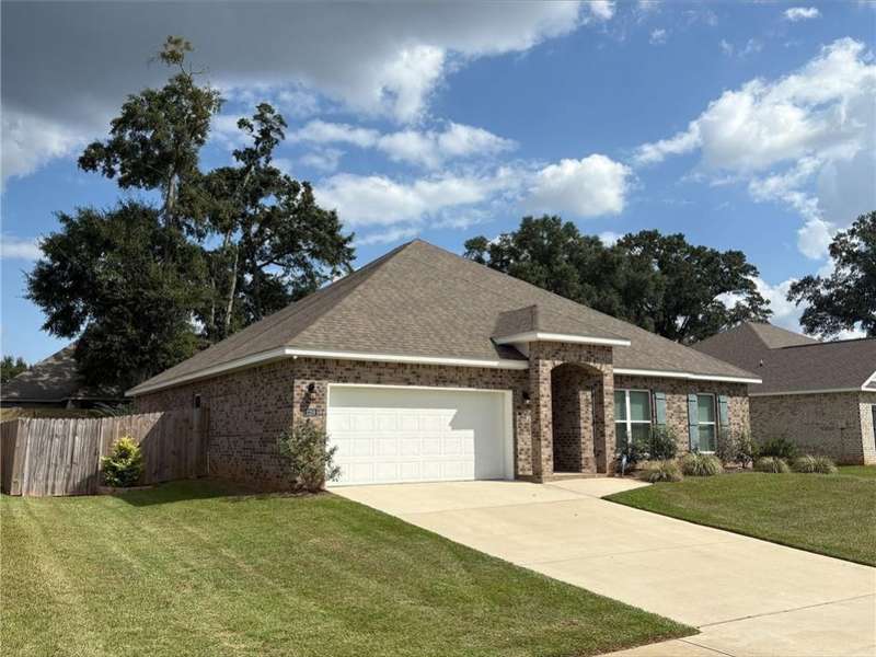 Hamilton Ridge is one of the newest communities in West Mobile. Popular floorplan features four bedrooms, two full bathrooms and a two-car garage. Kitchen offers a large island with quartz countertops and a spacious dining room area. This home comes standard with stainless steel stove, dishwasher, and microwave. The living room has gorgeous tray ceilings with crown molding. Beautiful owner's bedroom with tray ceilings, master bath has quartz countertops w/ dual sink vanity, separate tub, and tiled shower. HUGE closet in the bathroom suite. Luxury vinyl plank flooring throughout with carpet in the bedrooms only. Covered back porch on a nice-sized lot for all your outdoor living needs. Smart Home System includes Kwikset smart code front door lock, a Skybell video doorbell, an Eaton Z-wave light switch for easy remote control, and a Honeywell T6 Pro Z-Wave thermostat that works seamlessly with your smartphone or tablet. Communicate with your smart home System through the Amazon Echo Dot voice-command device. Take advantage of controlling the front porch, foyer lights, door locks, and even the thermostat. Built to the Gold FORTIFIED Home certification standards, which makes for potentially very affordable home owner's insurance. All measurements are approximate and not guaranteed, buyer to verify.