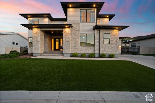 Gorgeous and Stunning, simply said. Shows better than a model home. The interior design is perfection. The outside design and grounds are immaculate. Situated in a gated community, this home has a FABULOUS floor plan with exceptional living spaces. Modern amenities with exquisite interior design and tons of natural light throughout. This beautiful home is ready to move in! Features include: 6 amazing bedrooms and 7 bathrooms, a main floor primary bedroom retreat with a fabulous bath area, and walk-in closet that is exceptional in space and design. 3 large family room areas, walk-out basement, mountain and valley views, and multiple patio areas for lots of outdoor entertaining and enjoyment. Main floor features large accordion-style sliding doors leading to a covered deck with views of the Wasatch mountains and valley to the East. Once again this home is filled with tons of natural light. The kitchen is a show stopper with a large island, lots of counter space and cabinetry, 2 pantry areas, large mud room, and butler kitchen area. The home features a second kitchen on the lower level providing a mother-in-law apartment area or just a great place to have additional gatherings. Laundry hookups are located on all three levels. The upper floor features the perfect craft room and laundry area. The community amenities ensure year-round outdoor entertainment. Enjoy the clubhouse and pool or take advantage of the mountain biking and hiking trail access from the community. Buyer and Buyer's agent to verify square footage and all listing information prior to closing.