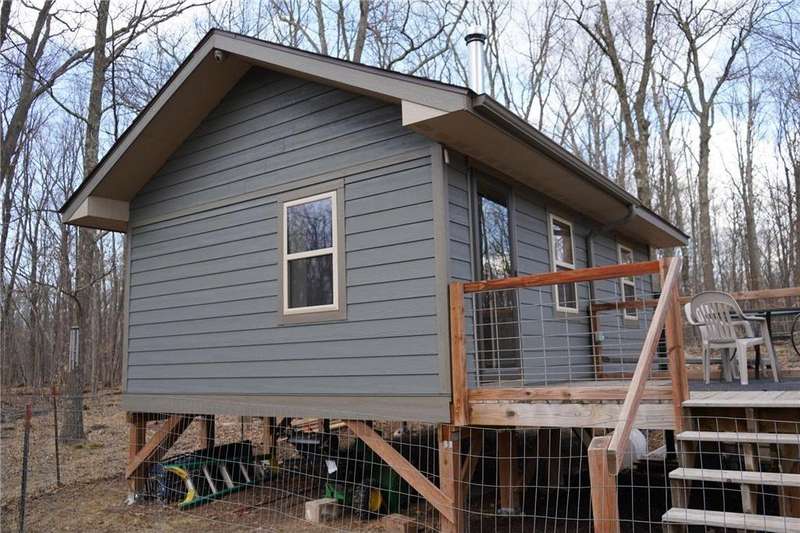 Off-Grid Tiny Home Retreat on Nearly 7 Acres designed by Certified Passivhaus Designer– Sustainable Living at Its Best. Tranquility awaits you with this super energy-efficient tiny home on fixed foundation nestled on almost 7 wooded acres at the end of a peaceful dead-end road with deeded Willow River access. Thoughtfully designed for off-grid living, this cozy and modern home features an approx.1000w solar electric system w/ 3500w Lithium Ion Battery Storage, SunMar Excel Composting Toilet, wood heat and rain water collection and filtering system offering true independence and sustainability. Built with durability and comfort in mind, the home boasts LP Smartside SmartLock engineered wood siding, soffits, and trim, paired with 25-inch blown-in cellulose insulation for an impressive R-90 rating in attic and 12” R50 walls with mineral wood insulation —keeping you warm in the winter and cool in the summer. The kitchen features a foot pump station for sink water system. The bathroom features a tiled shower with black shower base and water run out drain, rechargeable hand held shower head with water bucket. Bedroom features cork floor which fits either a king bed or two twin beds. Placement of the windows and glass door South facing offer the best placement for sun heat to warm the home along with 2 feet overhang to allow shade for the windows in the summer months. R5 insulated window coverings roman shade style offer additional insulation as well. Inside, every square foot is maximized for functionality, and the seamless connection to nature outside makes this the perfect retreat, full-time residence, or Airbnb opportunity. Low-maintenance, off-grid lifestyle. Whether you’re seeking a sustainable getaway or looking to downsize this home could be your perfect fit!