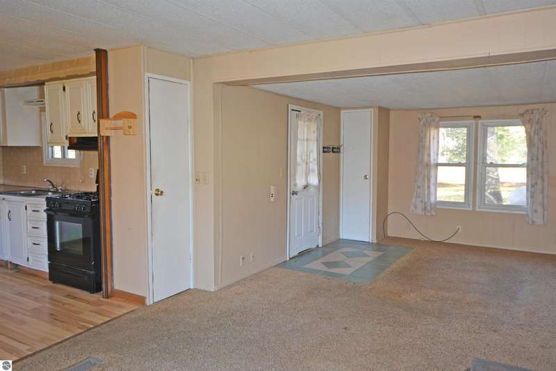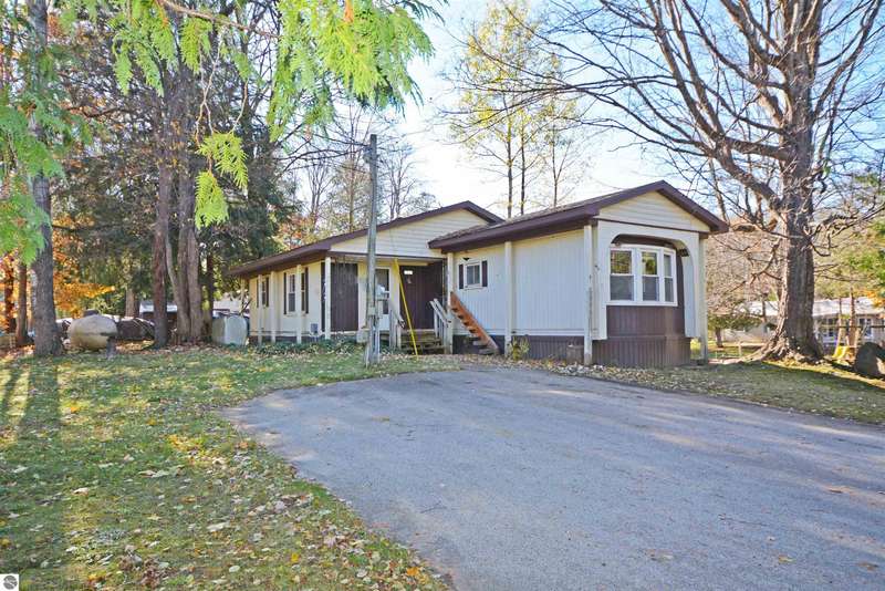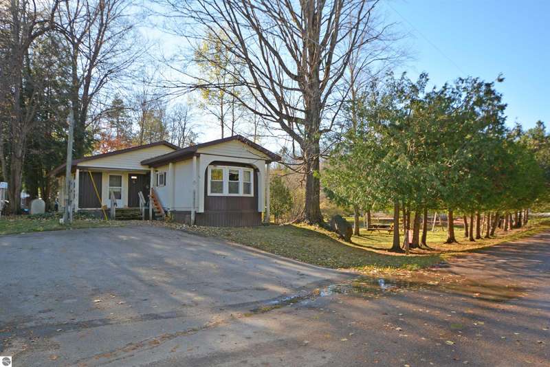 Exceptional value for Platte River frontage. 100 ft of private river frontage on a 1/3-acre lot in a quiet riverfront neighborhood-- perfect for fishing, kayaking, campfires, and taking in the peaceful natural setting. The existing 3 BR/1 BA 1973 fixer-upper single-wide mobile home is in rough shape and may be best suited as a temporary base while planning improvements or a future build. The detached 2-car garage provides useful storage for vehicles, tools, and outdoor gear -- ideal for those who enjoy spending time outside. This property is well-suited as a seasonal getaway, hunting/fishing camp, or rustic up-north retreat with convenient access to public land, rivers, lakes, and recreational trails throughout Benzie County. Just a short drive to the shops and dining of Beulah and Honor, Crystal and Platte Lakes, and local conveniences -- all while enjoying the privacy and natural beauty of riverfront living. An opportunity to own Platte River frontage at this price point is rare -- bring your vision and make it your own. IMPORTANT: Due to the age and condition of the home this will need to be a cash purchase. Property is being sold as-is.