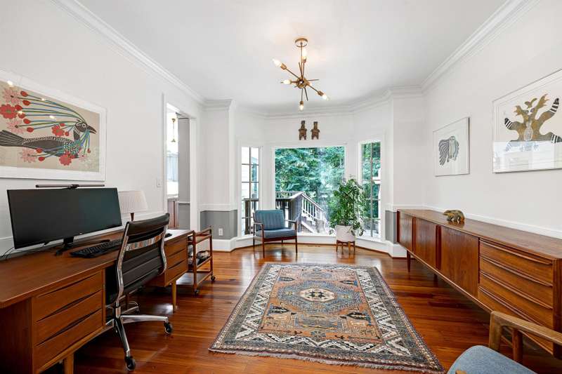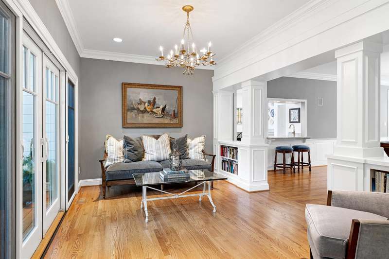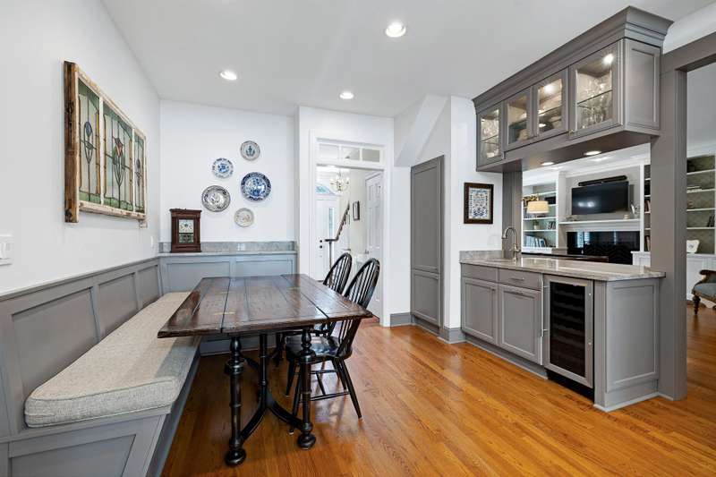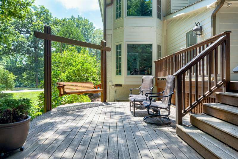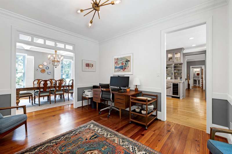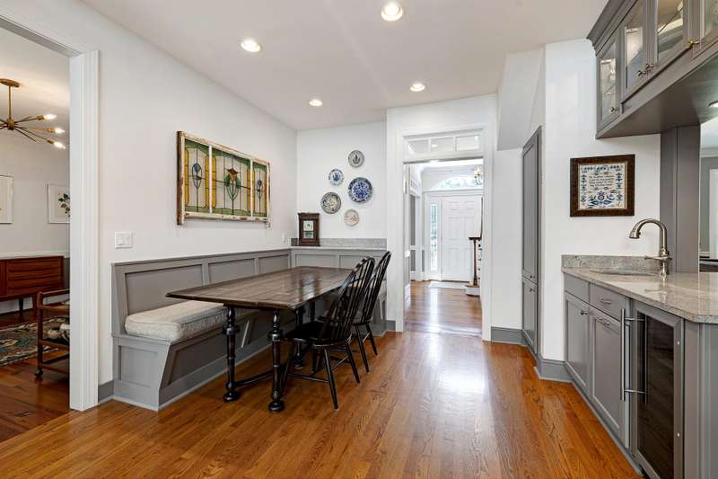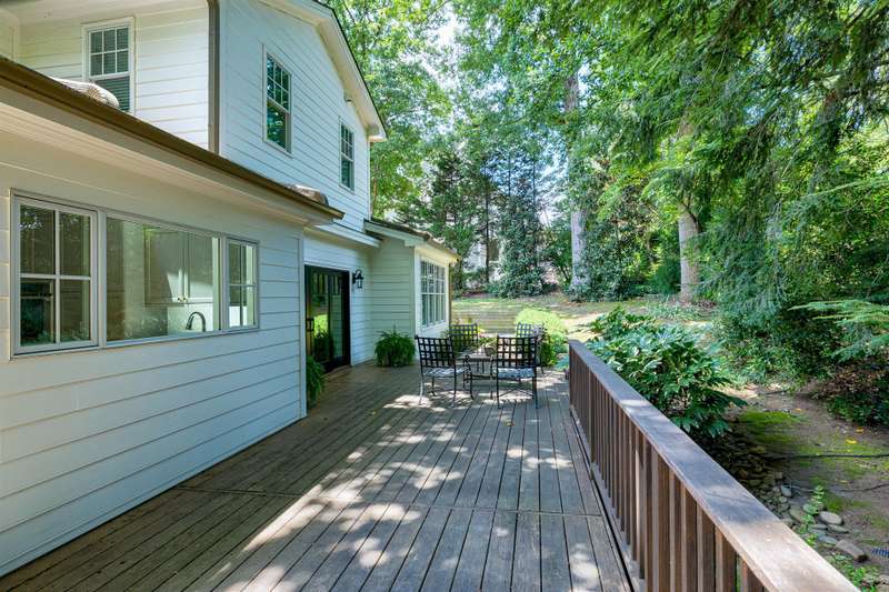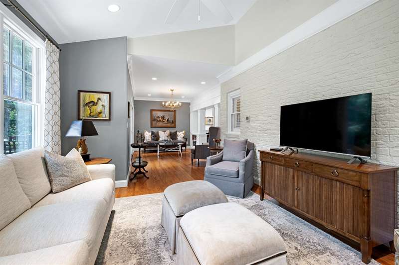 Set on a peaceful cul-de-sac with no through traffic, this 4-bed, 4-bath home offers nearly 4,300 sq ft of beautifully updated living. A major two-story rear addition expands the living space with a renovated kitchen and double sunrooms. All new Pella windows, new skylights, updated HVAC systems on every level, and major plumbing replacement mean the big projects are done. Quiet location, quality finishes, and a strong price point make this one of the best values in North Raleigh.Light-filled interiors begin with a welcoming foyer and continue into a versatile living/billiards room with built-ins and a gas fireplace. The formal dining room features a beamed ceiling and space to host a crowd. The kitchen includes a center island, gas cooktop, wet bar, granite counters, new skylights, and a sunny breakfast banquette. Two adjoining sunrooms create relaxed spaces for reading, entertaining, or enjoying the quiet setting. The primary suite offers a fireplace, double closets, and a newly renovated bath. Upstairs are two additional bedrooms, a full bath, and a spacious bonus room with rear-stair access. The third floor provides a private guest suite with full bath. Outside, a two-level deck overlooks a landscaped yard with magnolias, hydrangeas, and towering oaks, backing to a creek and forest.