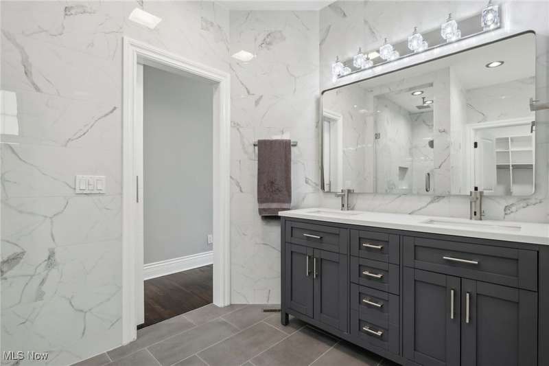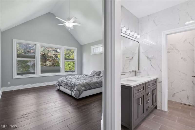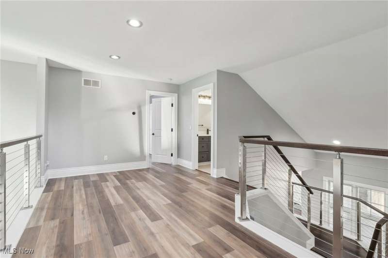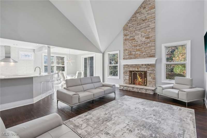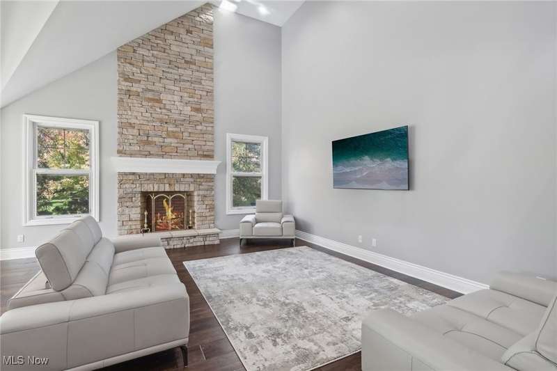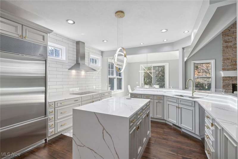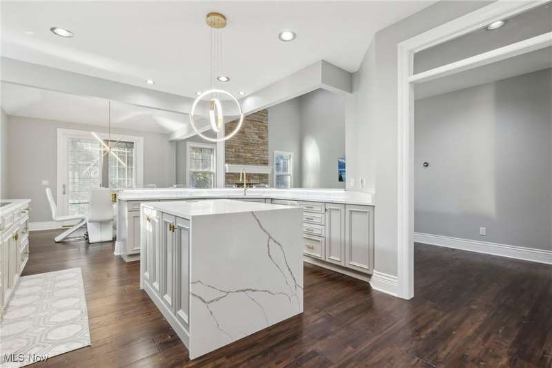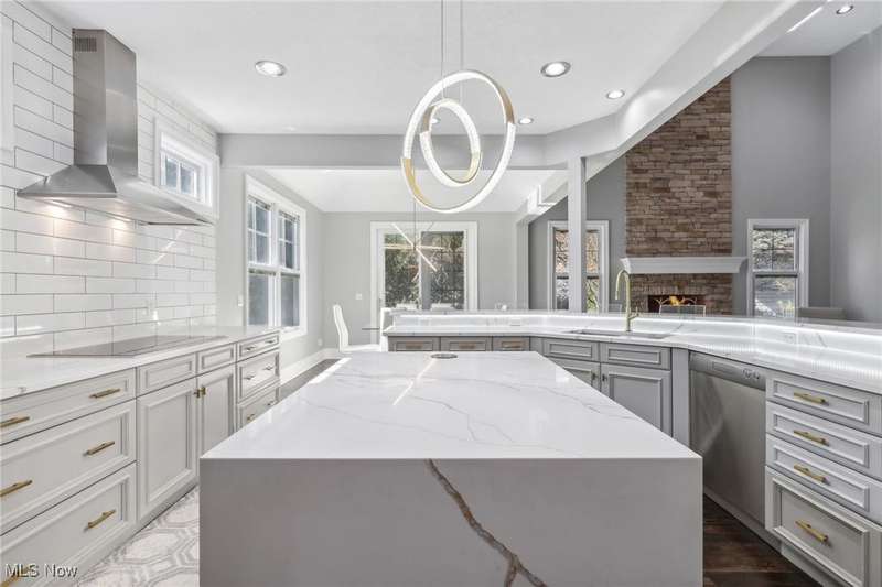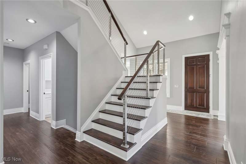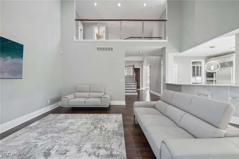 Striking modern colonial home in Sterling Lakes of Pepper Pike. Exceptionally maintained grounds makes this low-maintenance GATED community of prestigious homes stand out like no other in the area. Beautifully set among other fine homes, this property offers tasteful upgrades & updates throughout. The first floor layout keeps ease of living in mind, w/a spacious & vaulted 1st floor owners suite boasting remodeled glamor bath w/fully tiled walk-in shower, soaking tub & his/her closets, among other fine details. The renovated modern eat-in kitchen boasts a waterfall quartz top center isle, stunning counter top lighting, exceptional walk-in pantry, plus butler's pantry pass-through to the formal dining room. A floor to ceiling gas fireplace warms the space w/stone veneer. The private first floor den/sitting room is smartly set away from the hustle and bustle, offering it's own private patio to steel away w/your thoughts. The stairs & loft area have been fully transformed with a sleek cable railing system, adding to the dramatic modern appeal. Two addl spacious bedrooms w/2 full baths, plus large loft area provide private quarters for family & guests. The recently finished basement adds tremendous flex space (approx 1500 sqft), including recreation, storage, and bedroom suite, offering a large closet & full bath. This property has been transformed from traditional to stunningly modern, including but not limited to: new solid surface flooring throughout (no carpet), lighting, paint, baseboards, fully remodeled kitchen and baths, two full bath added, basement finished, & so much more! 1st floor laundry room. 3 car garage w/8' doors and built in cabs. Low maintenance living includes lawn care, landscaping, snow removal & general grounds care. Enjoy the meandering walking paths overlooking multiple water views around the community. Excellent location. Close to I-271, fine shopping, and some of the best hospitals and schools in Greater Cleveland! Quick possession if needed.