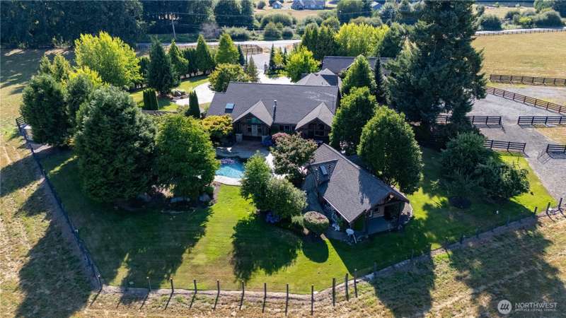 All of this Elegance and Charm in a country setting in East Olympia! Perched on 5+ Acres, this gated Smart Home is an entertainers dream! 3171sqft.main home, 500+sqft pool/guest house w/bedroom and 3/4 bath, 900+sqft 3-car garage w/built in cabinets and 1230+sqft RV garage. And if that's not enough... how about a heated in-ground pool w/slide, waterfalls, and a hot tub! The back patio area and outdoor kitchen are just amazing! Granite tops and Stainless Steel appliances in the kitchen and outside! Nice open floor plan and split bedroom design are both comfy and functional! Complete with huge office, amazing Formal dining room, walk in pantry, butlers pantry, large bonus room upstairs. Too many upgrades to list, Come see it today!