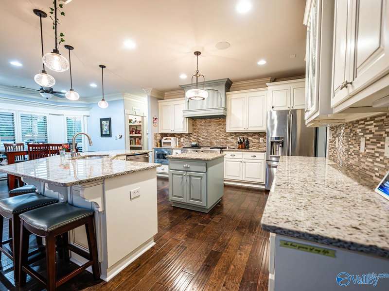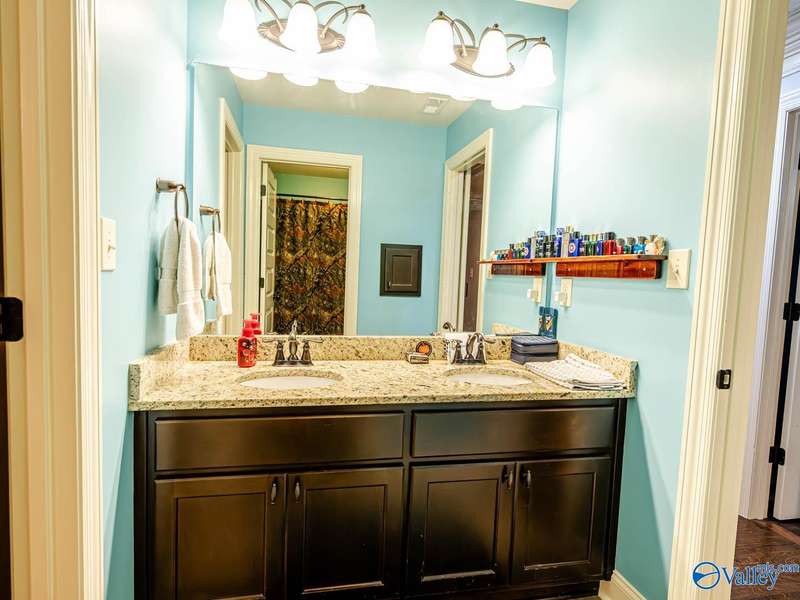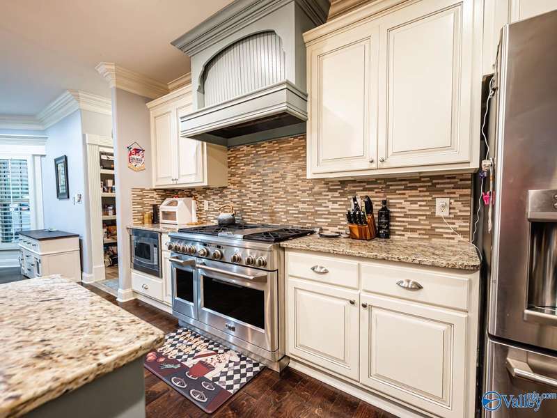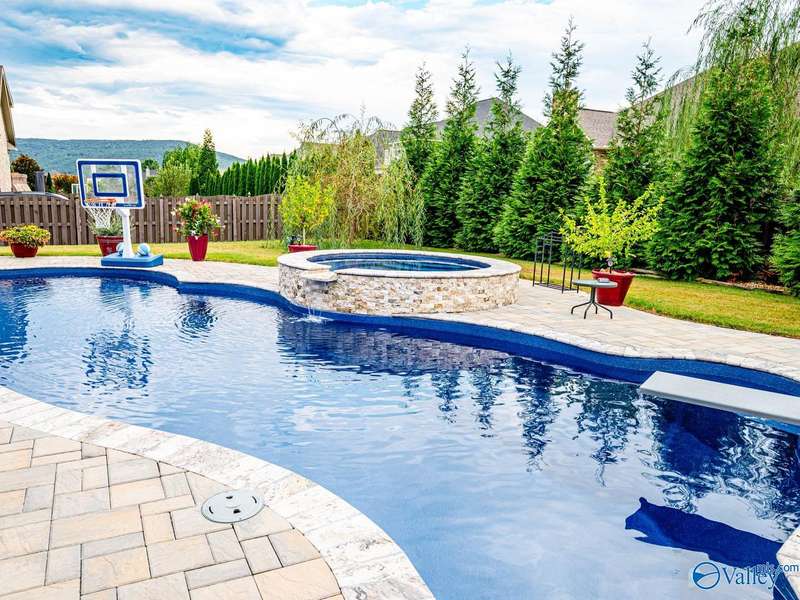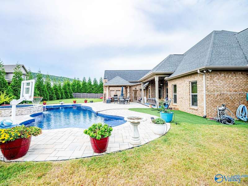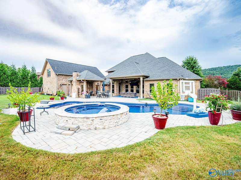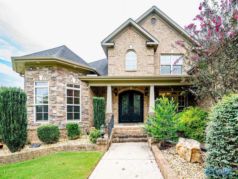 Outdoor living paradise in McMullen Cove! This brick and stone home has a well laid out floorplan +5 car garage, brand new pool & jacuzzi! Decorative iron doors make a strong entrance & hardwood floors found throughout. The home has a gourmet kitchen with GE Monogram 6 burner stove, range hood, custom cabinets, granite countertops, eat in space plus a lovely formal dining room made for entertaining, plus a cozy keeping room off the kitchen. Primary suite is on main level with 2 tier lighted trey ceiling, updated BA with dual head showers and walk in closet plus storm shelter. Upstairs has 4 BRs plus bonus (5th BR). Fenced yard with Security and lights, Covered porch + outdoor grill area & BA
