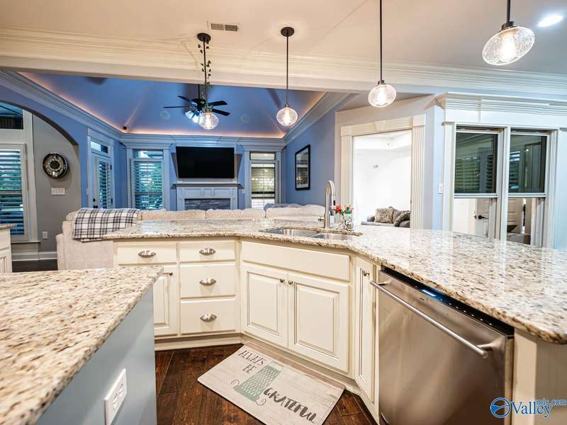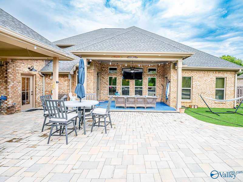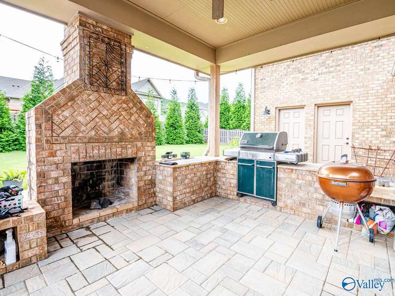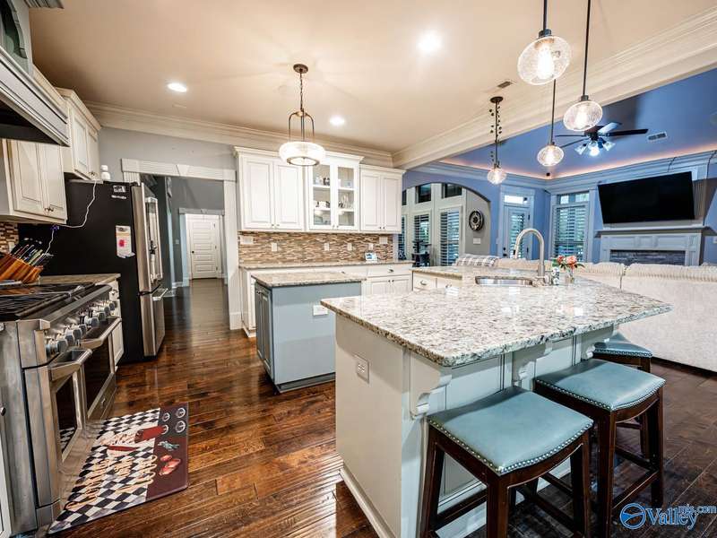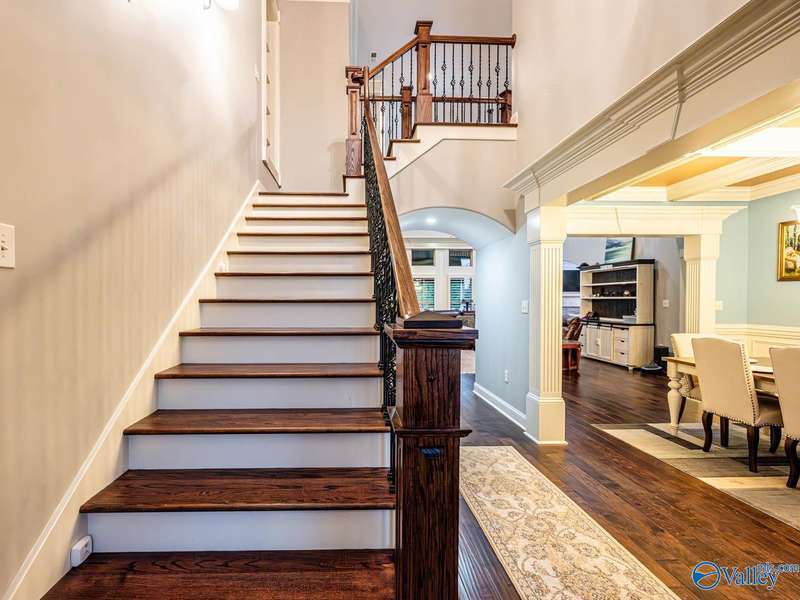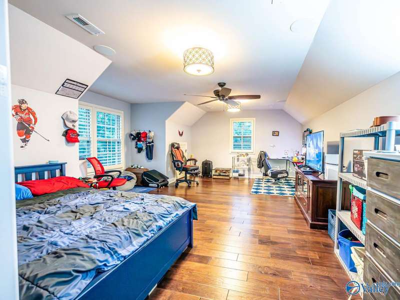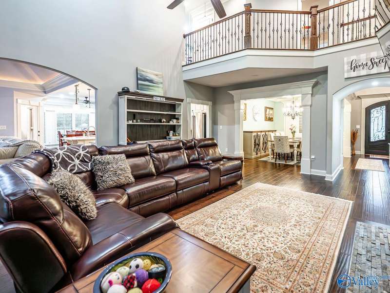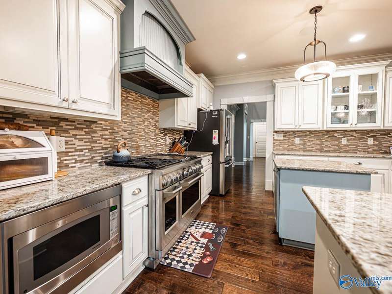 Outdoor living paradise in McMullen Cove! This brick and stone home has a well laid out floorplan +5 car garage, brand new pool & jacuzzi! Decorative iron doors make a strong entrance & hardwood floors found throughout. The home has a gourmet kitchen with GE Monogram 6 burner stove, range hood, custom cabinets, granite countertops, eat in space plus a lovely formal dining room made for entertaining, plus a cozy keeping room off the kitchen. Primary suite is on main level with 2 tier lighted trey ceiling, updated BA with dual head showers and walk in closet plus storm shelter. Upstairs has 4 BRs plus bonus (5th BR). Fenced yard with Security and lights, Covered porch + outdoor grill area & BA